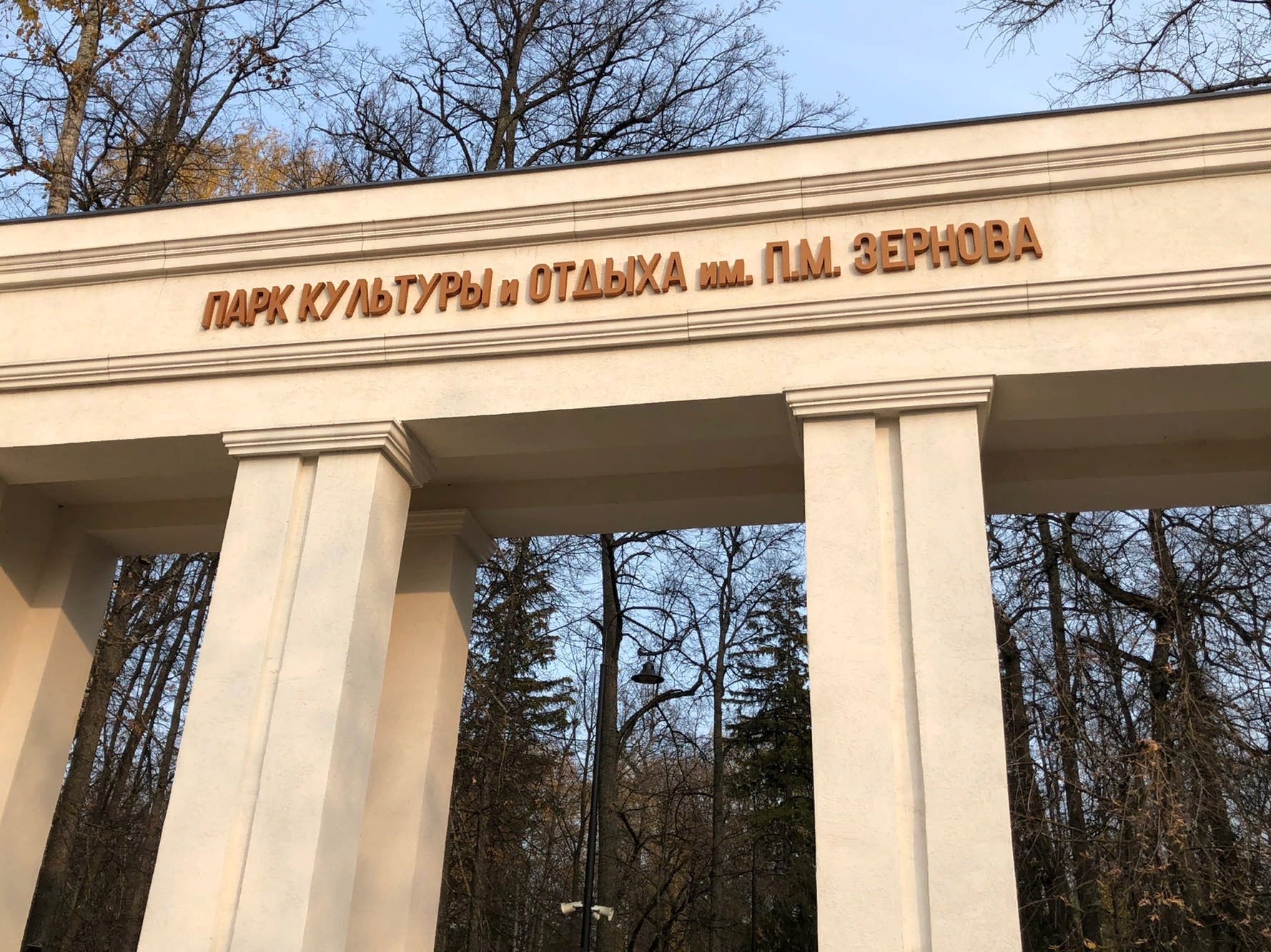 12 октября, на центральной арке парка им. Зернова появилась надпись с названием этого объекта. Шрифт надписи максимально был приближен к шрифту исторической надписи на арке парка 60-х-70-х годов. Само присвоение городскому парку имени П.М. Зернова произошло в далеком 1964 году. Также, 11 октября была восстановлена навигация по парку!