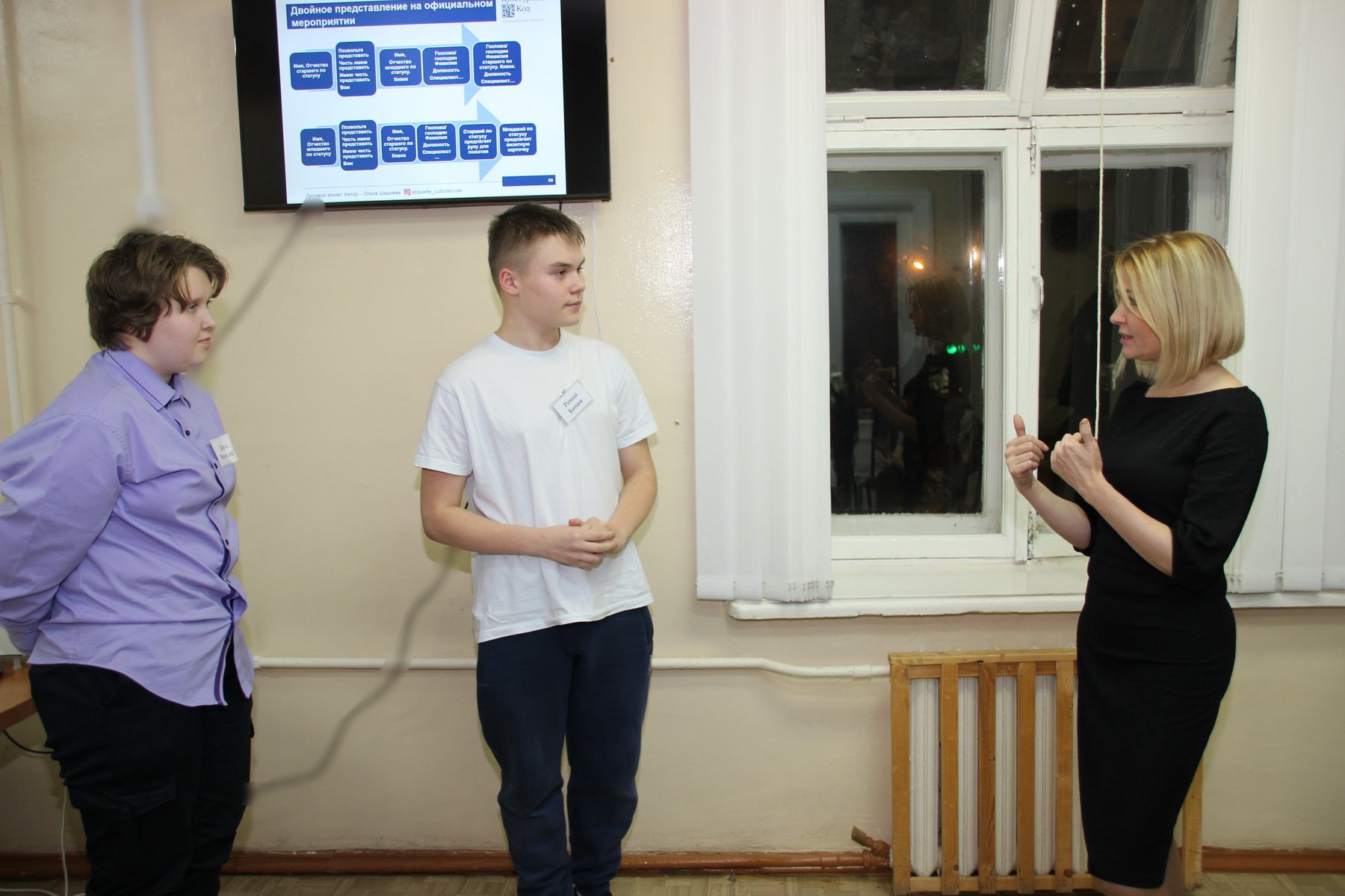 «Позвольте представиться: Иван Иванов! И уже не надо добавлять слова „меня зовут“ или „моя фамилия“, вы уже сказали то, что нужно». На втором занятии в «Этикет-гостиной» ведущий специалист отдела протокольных мероприятий РФЯЦ-ВНИИЭФ Ольга Шадиева в мельчайших деталях описывала старшеклассникам процедуру знакомства в разных ситуациях.