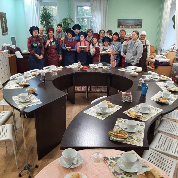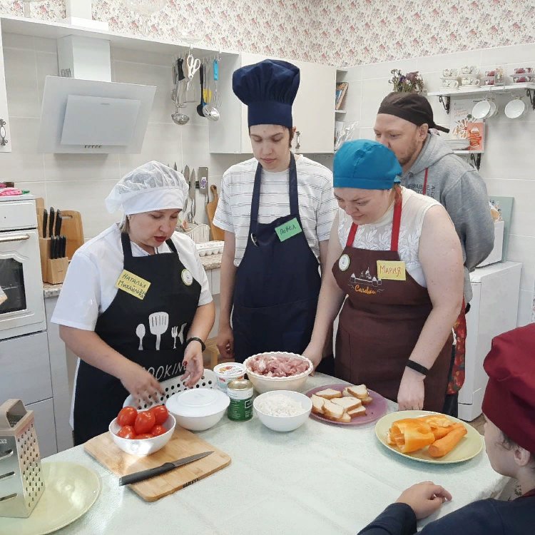 Завершаются занятия первой группы молодежи с ограниченными возможностями здоровья в рамках проекта «Гостиная с припеком». Два месяца молодежь с ОВЗ училась готовить различные блюда под руководством опытных наставников и с помощью волонтеров-тьюторов.