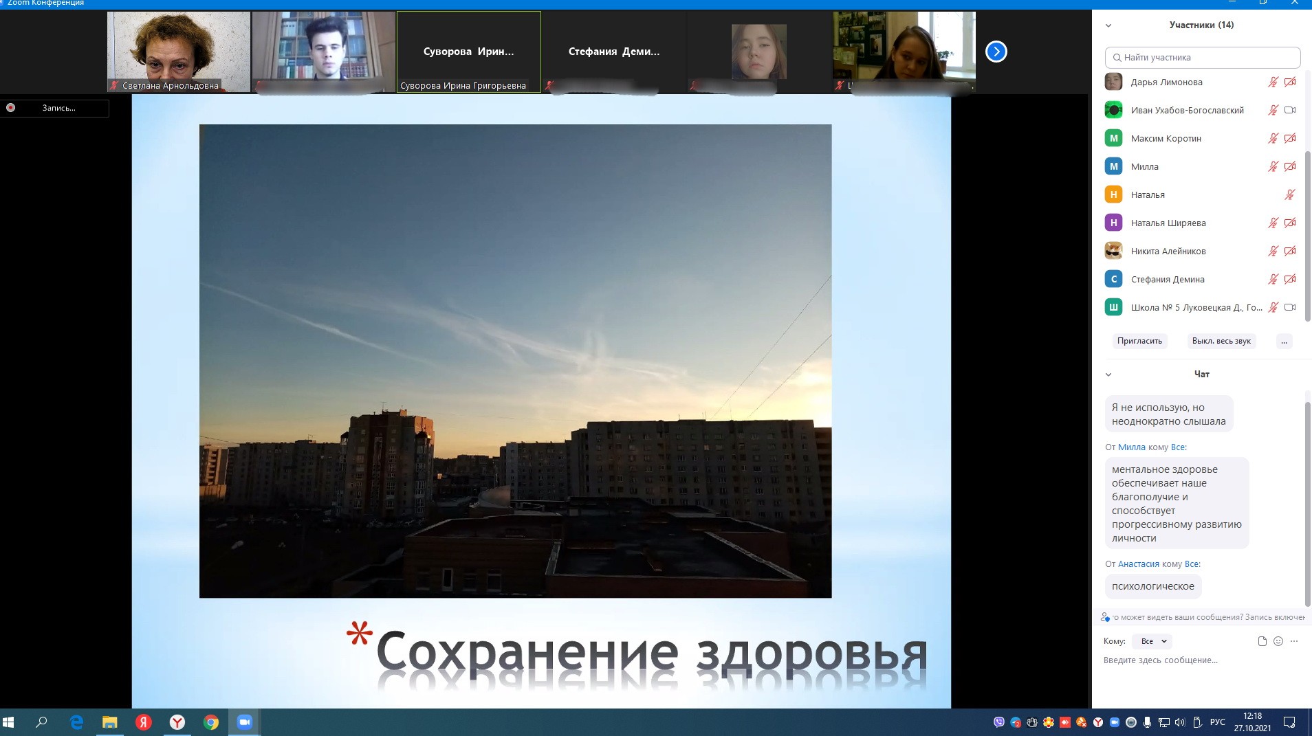 Общение шло в онлайн-формате, но Ирина Григорьевна постаралась максимально полно донести до ребят мнение ученых и свою позицию. Она дала практические советы, рассказала о том, как программировать себя на позитивные изменения, минимизировать пустую трату времени и энергии, сохранить физические силы и душевное равновесий, как заниматься самовоспитанием и почему доброта помогает в конфликтной ситуации.