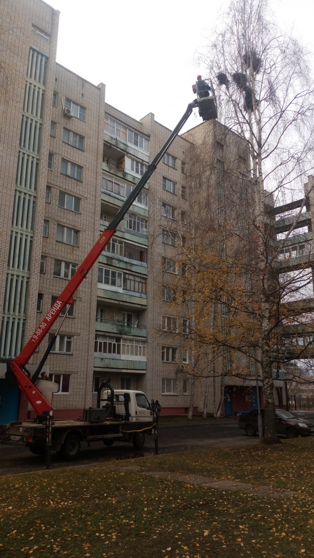 Решение. Проведена обрезка веток деревьев, что, по мнению специалистов-орнитологов, побудит птиц строить гнёзда в других местах.