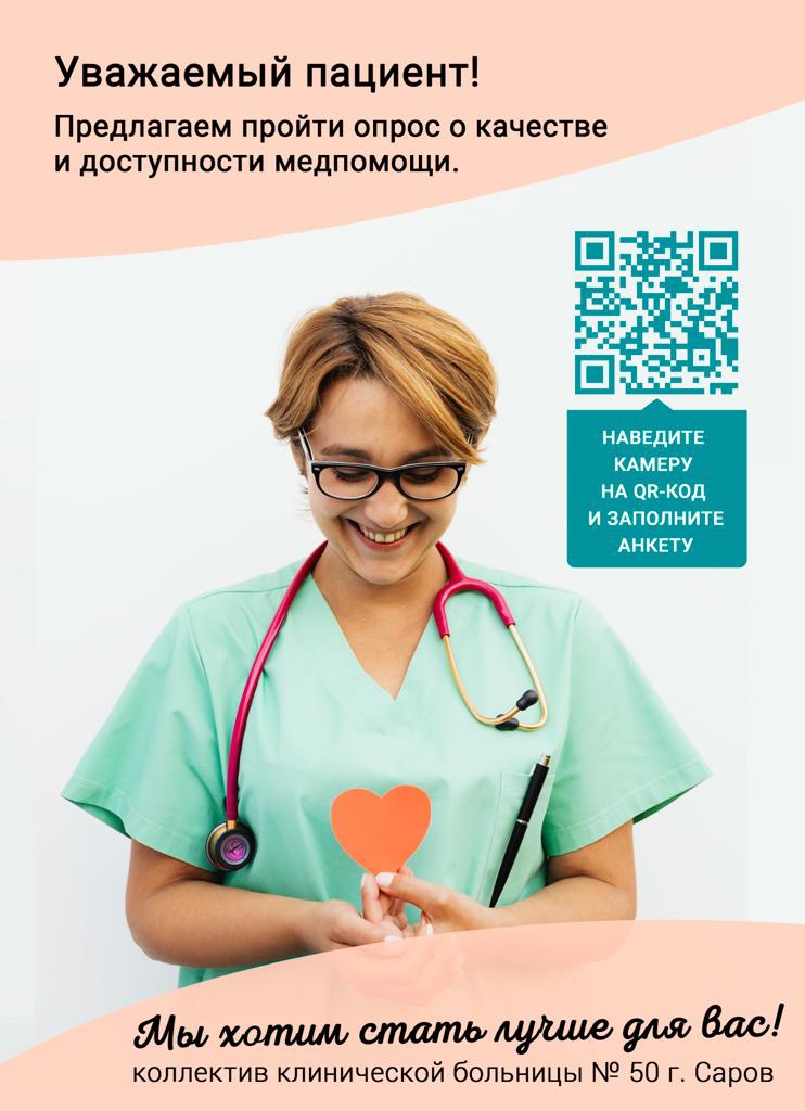 Администрация клинической больницы № 50 ФМБА России просит ответить на вопросы анкеты. Ваши ответы и пожелания помогут разработать мероприятия, направленные на улучшение качества обслуживания пациентов. Ответы принимаются до 10 января включительно.
