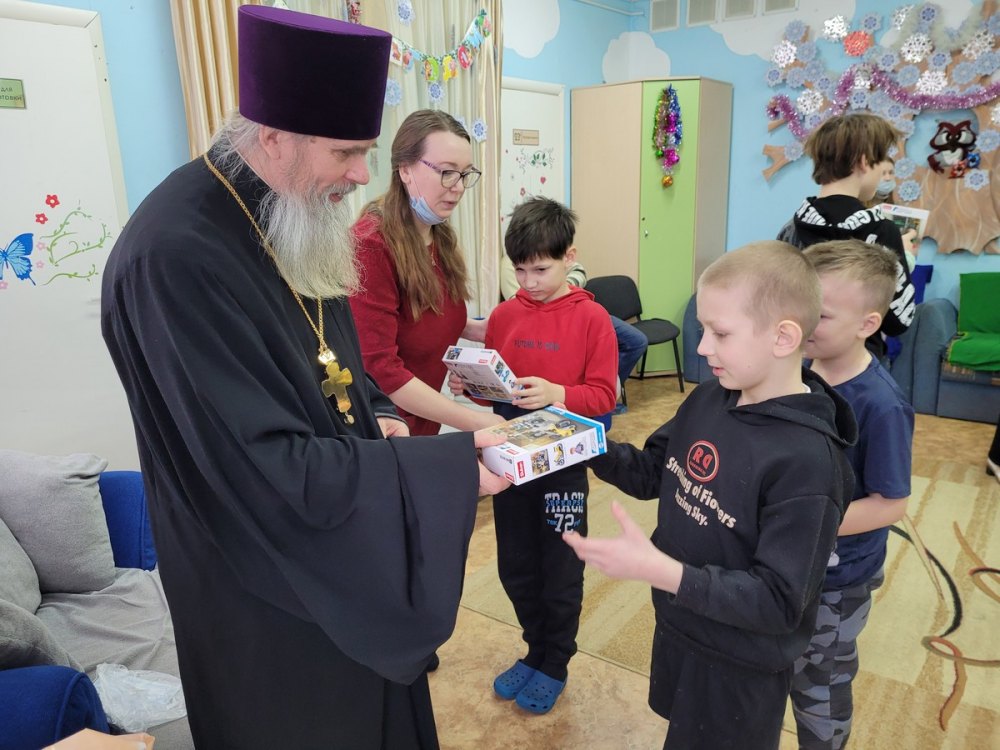 Также поздравить ребят пришел протоиерей Владимир Кузнецов. Он рассказал собравшимся о том, что родившийся Господь принес нам заповедь о любви. И мы можем научиться этому, если будем относиться к людям по-доброму. Батюшка пожелал ребятам совершать как можно больше добрых дел, подражая Иисусу Христу.