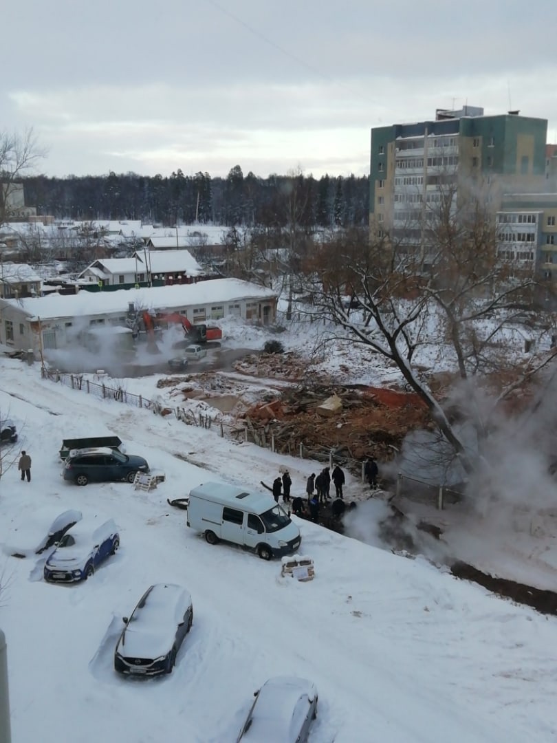Возле места сноса школы № 13 прорвало отопительные коммуникации