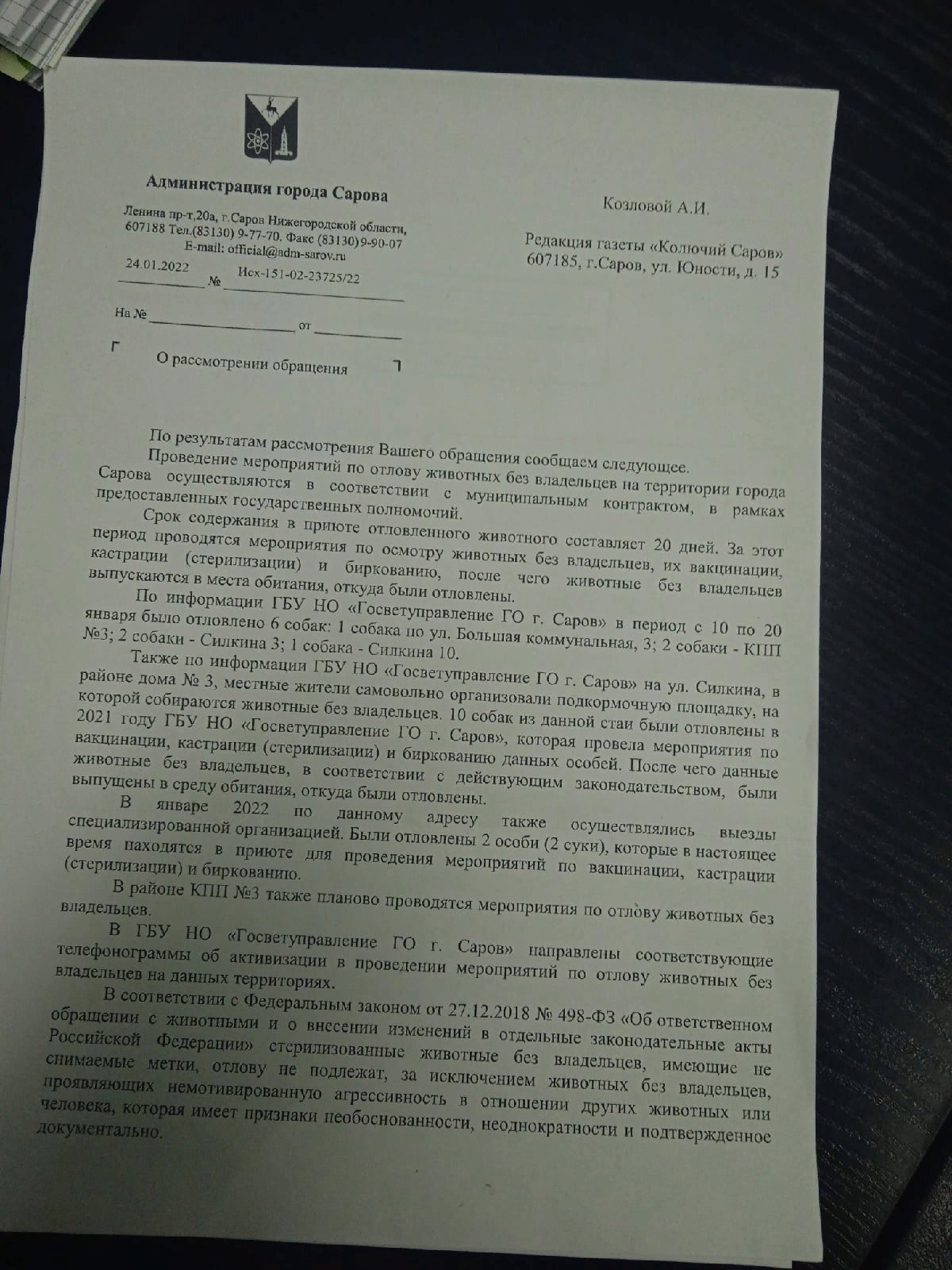 Пришёл ответ от администрации касательно стаи бездомных собак