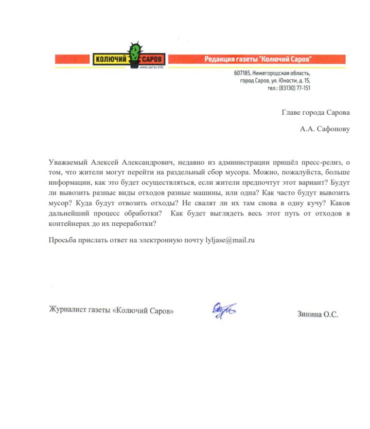 Администрация ответила как именно будет осуществляться раздельный сбор мусора