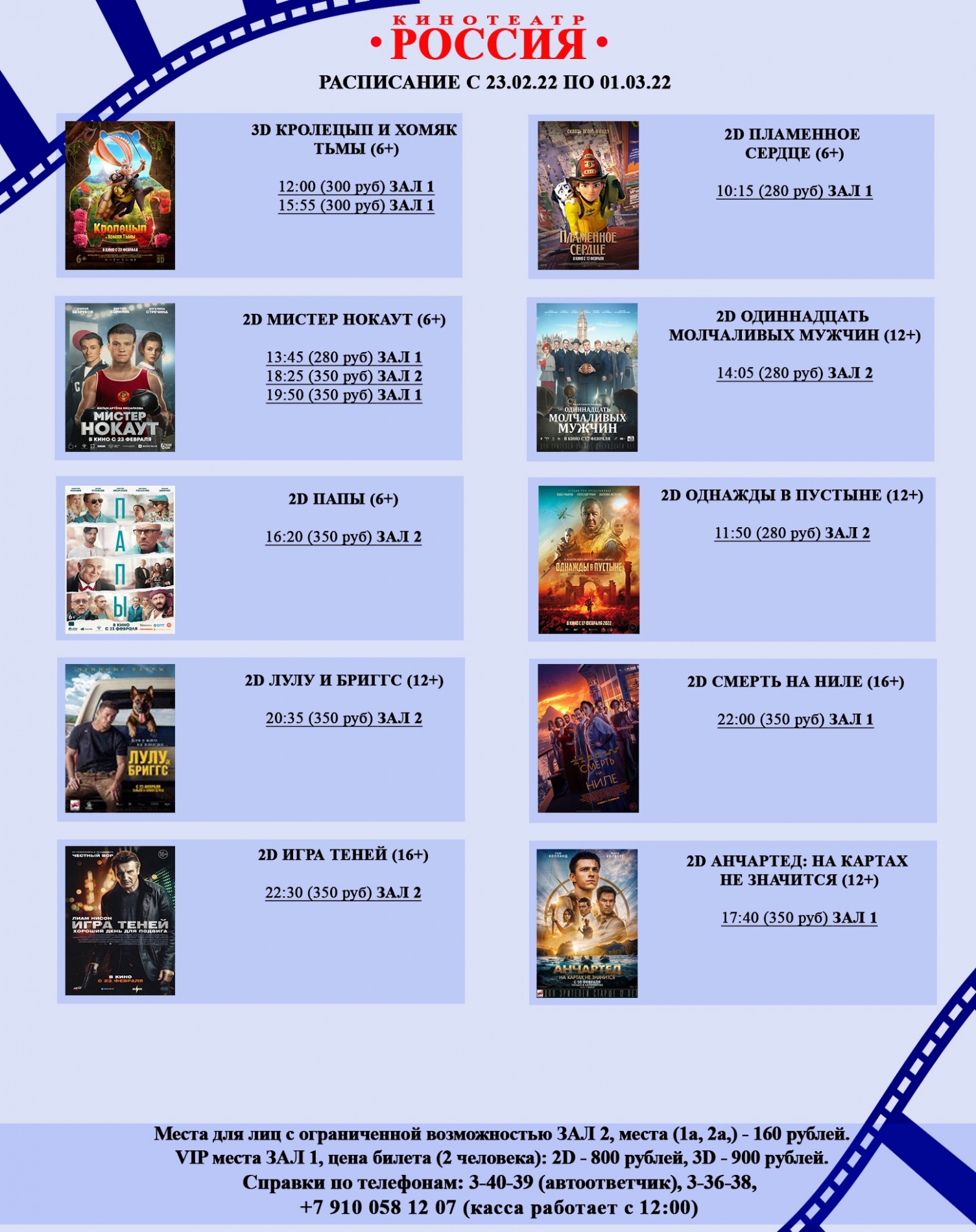 Афиша кинотеатра «Россия» с 23 февраля по 1 марта