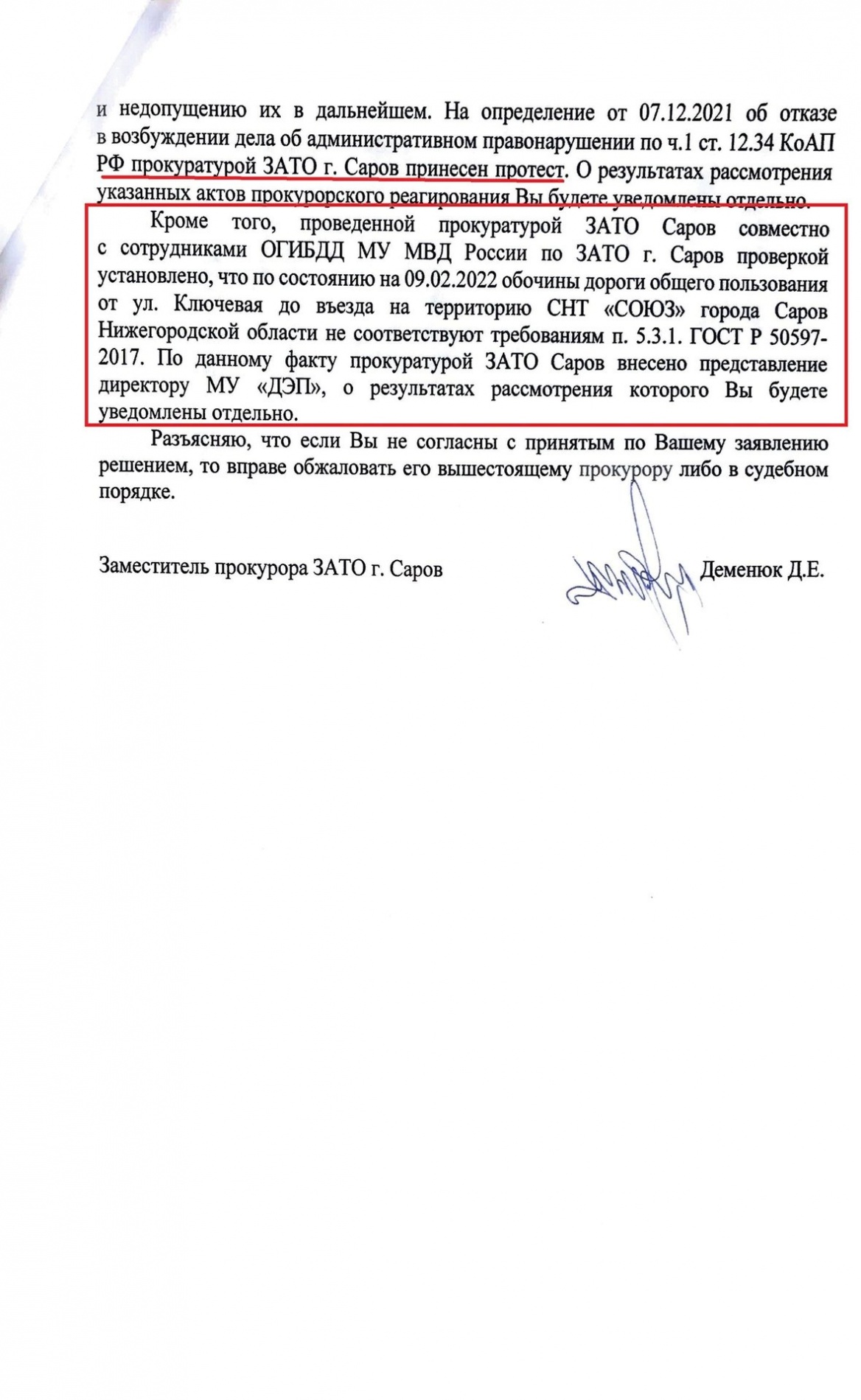 По выявленным прокуратурой нарушениям к ОГИБДД и МУ"ДЭП" приняты меры прокурорского реагирования, внесены представления и протест.