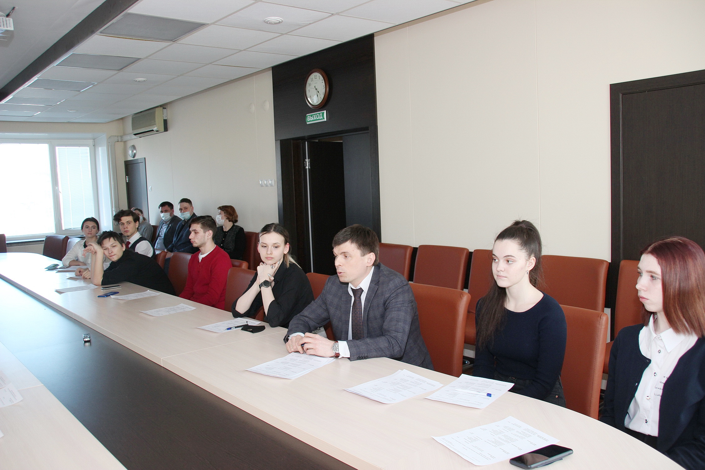 Выездное занятие Школы «Лидер» прошло 15 марта в городской Думе города Сарова. Девять самых ярких и активных старшеклассников из лицея № 3, школ №№ 5, 10, 11, 13 и 17 в течение двух часов общались «вживую» и в онлайн-формате с суперфиналистами (победителями) конкурса управленцев «Лидеры России» сезона 2021/2022.