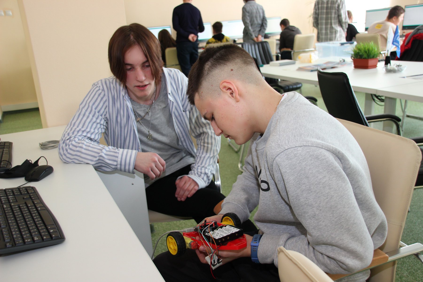 Советчиками и «скорой помощью» для школьников были преподаватель Андрей Додин, четверокурсники Александр Бодряшкин, Денис Плеханов и одиннадцатиклассник Даниил Кротов, который тоже отлично разбирается в программировании и управлении машинами на платформе Arduino.