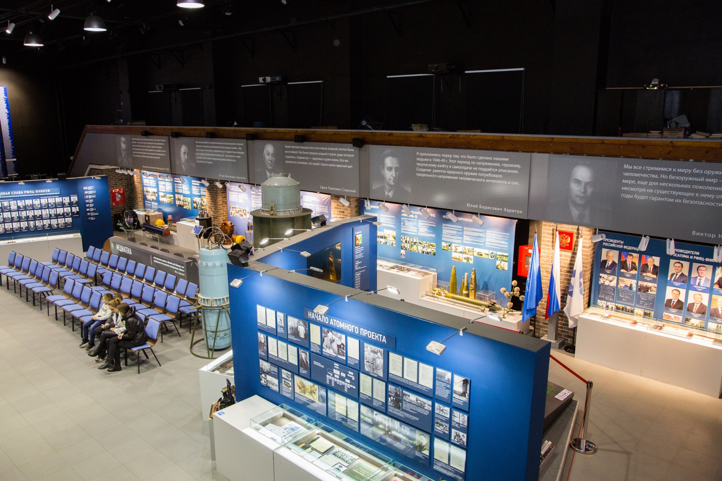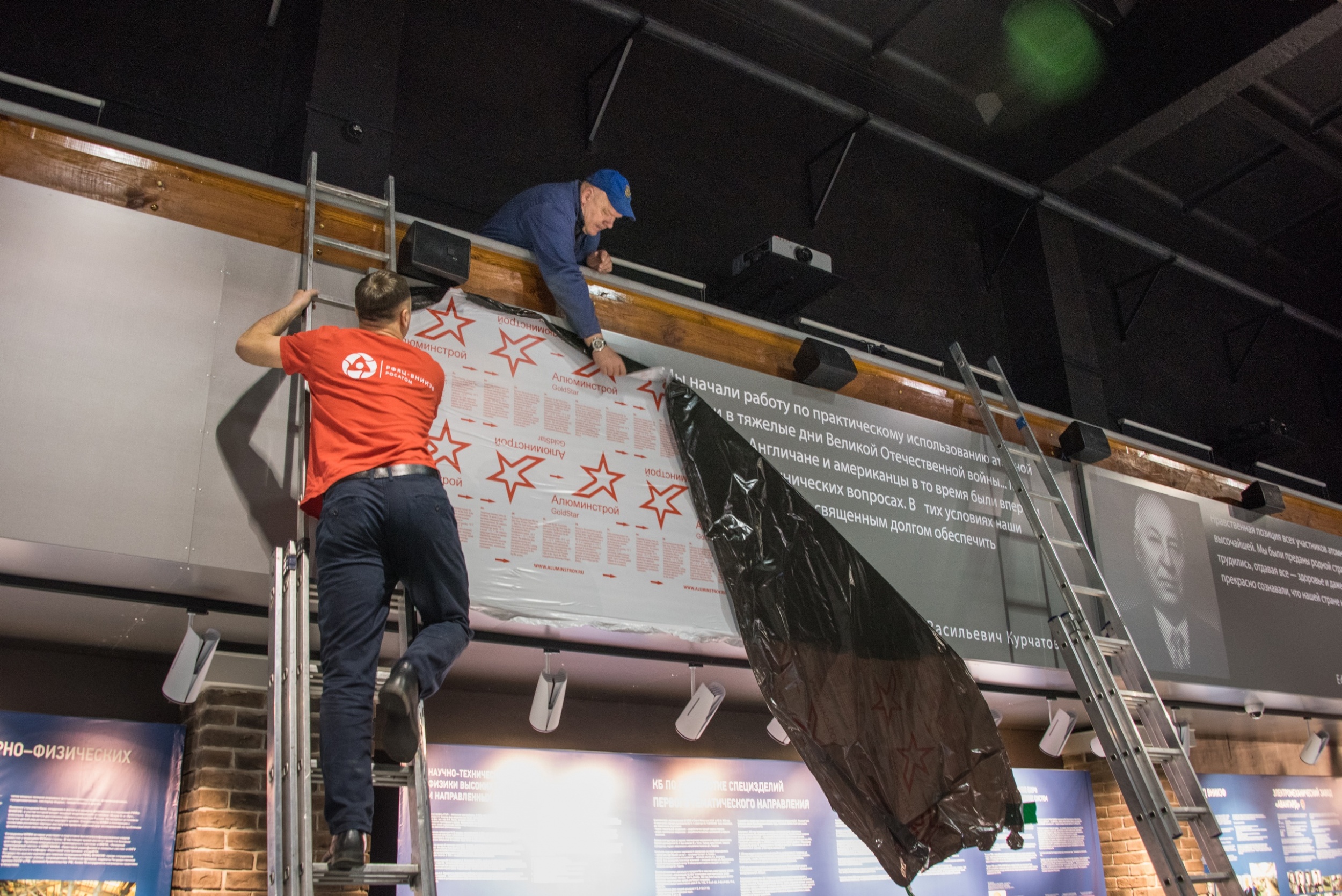 В Музее ядерного оружия завершился монтаж баннеров с цитатами руководителей и великих учёных-участников советского атомного проекта на галерее в зале основной экспозиции.