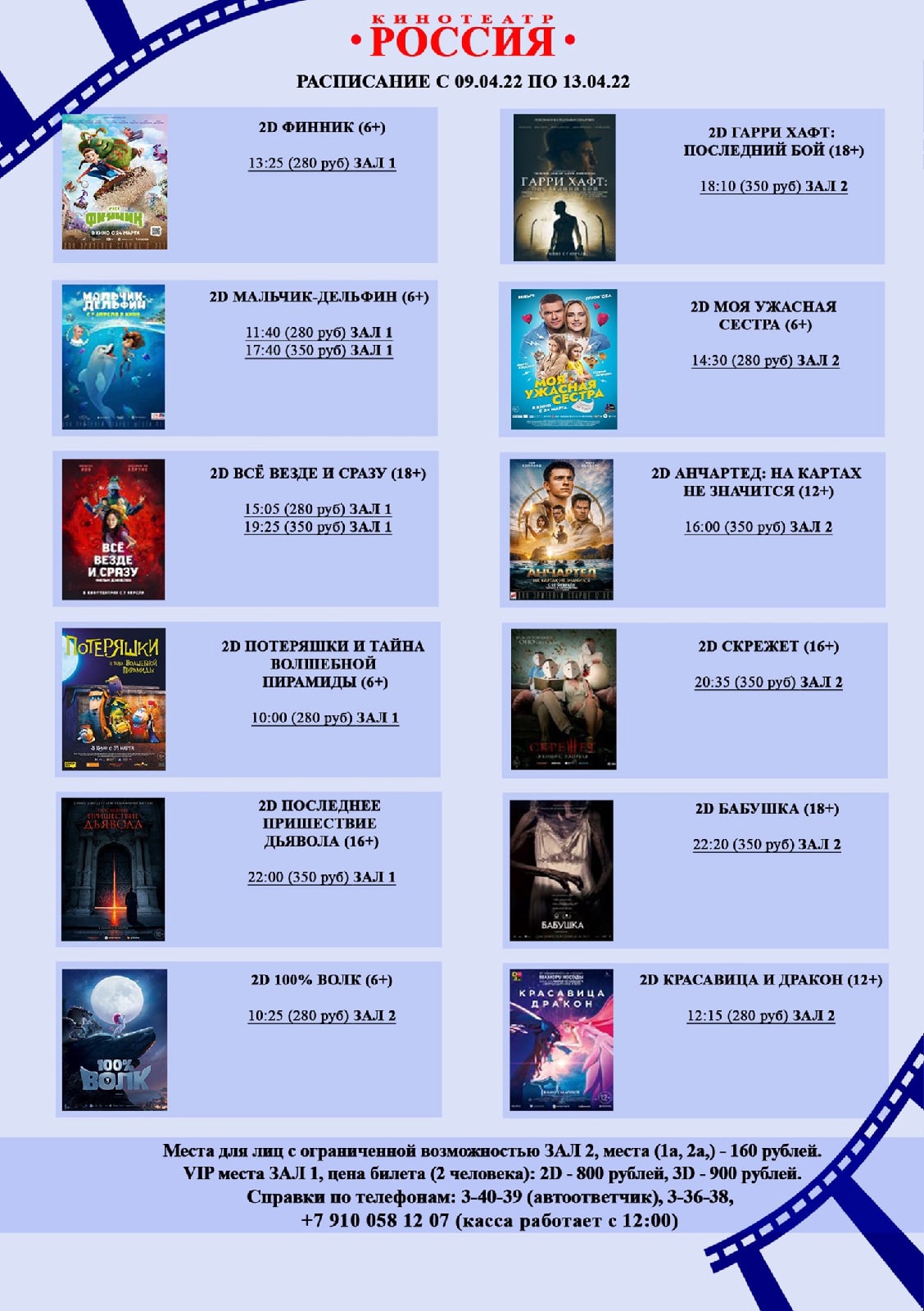 Расписание кинотеатра «Россия» с 9 по 13 апреля