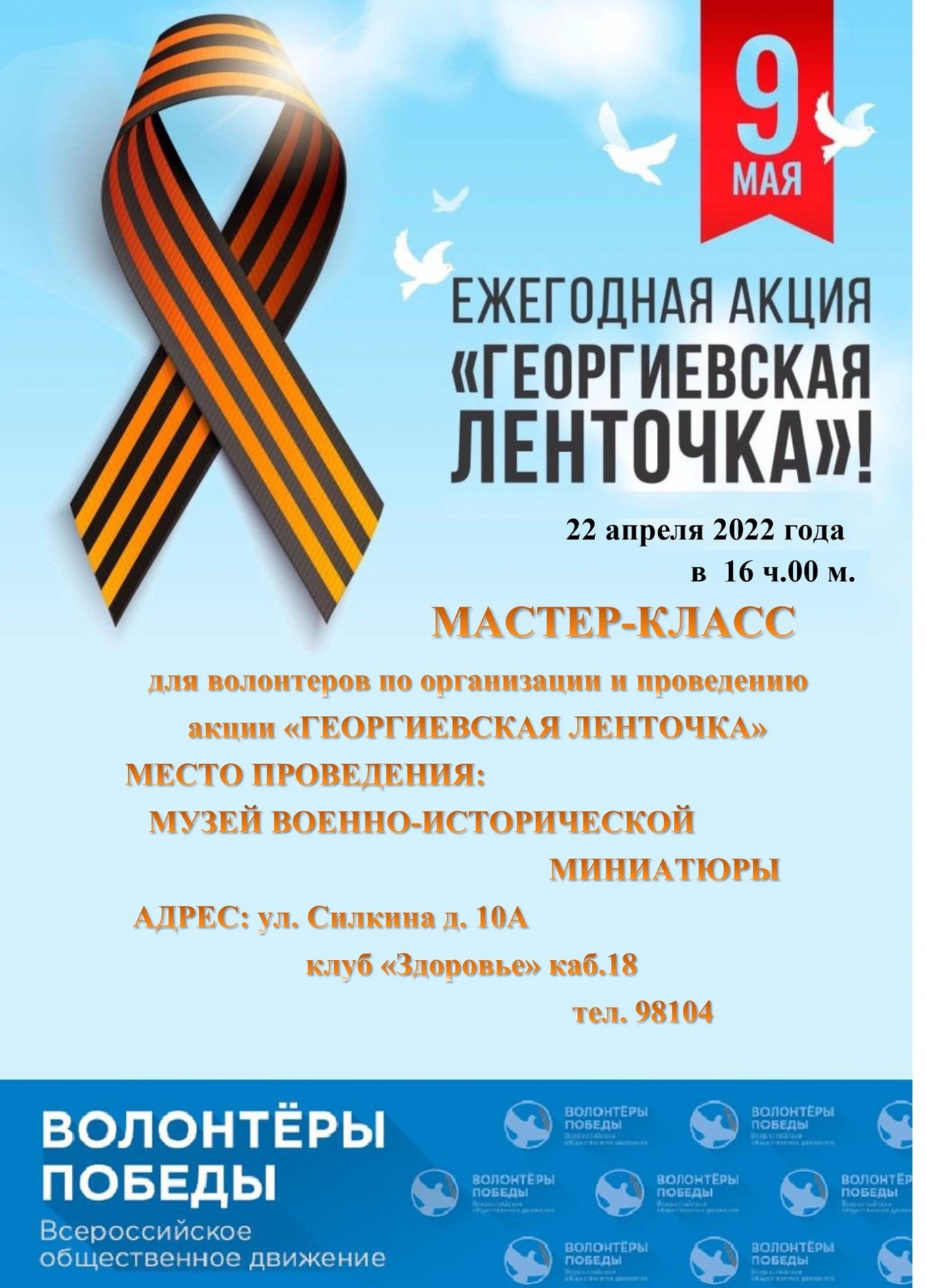 22 апреля в музее военно—исторической миниатюры пройдёт акция «Георгиевская ленточка»
