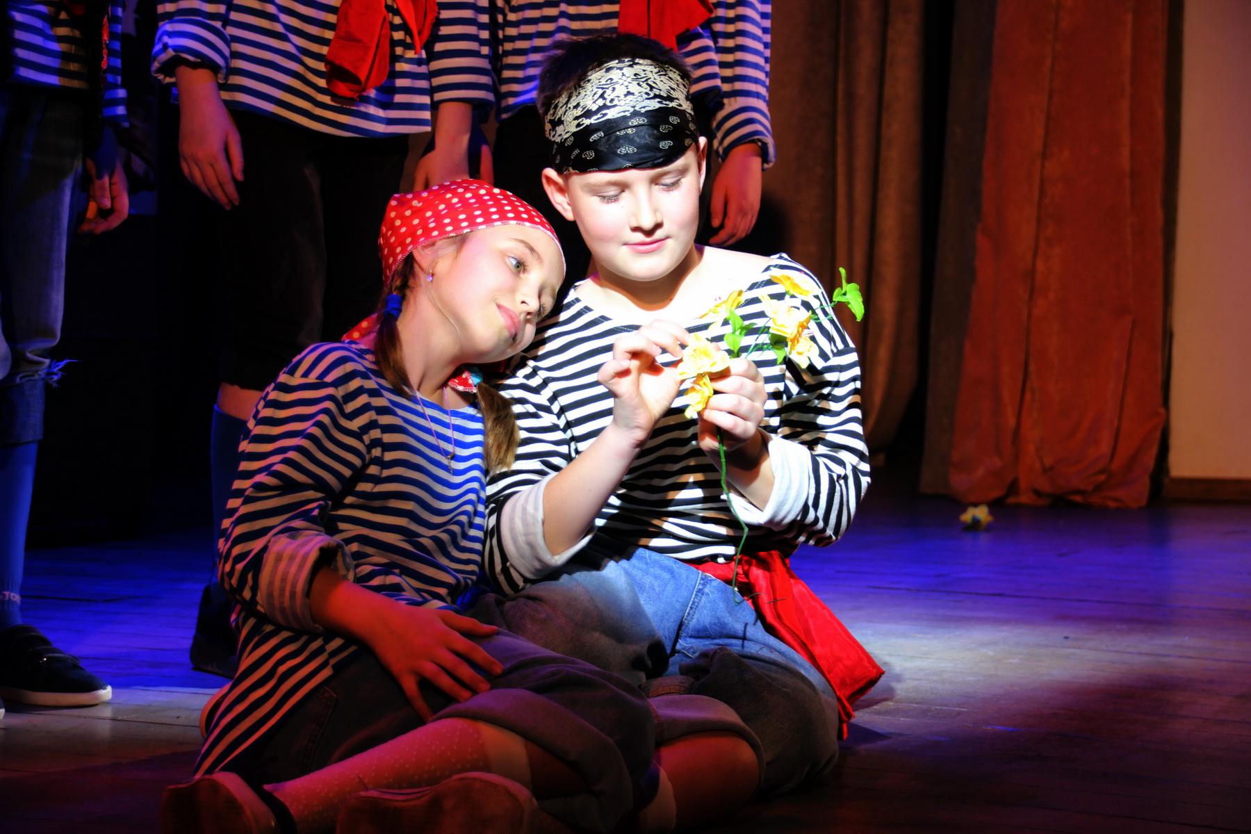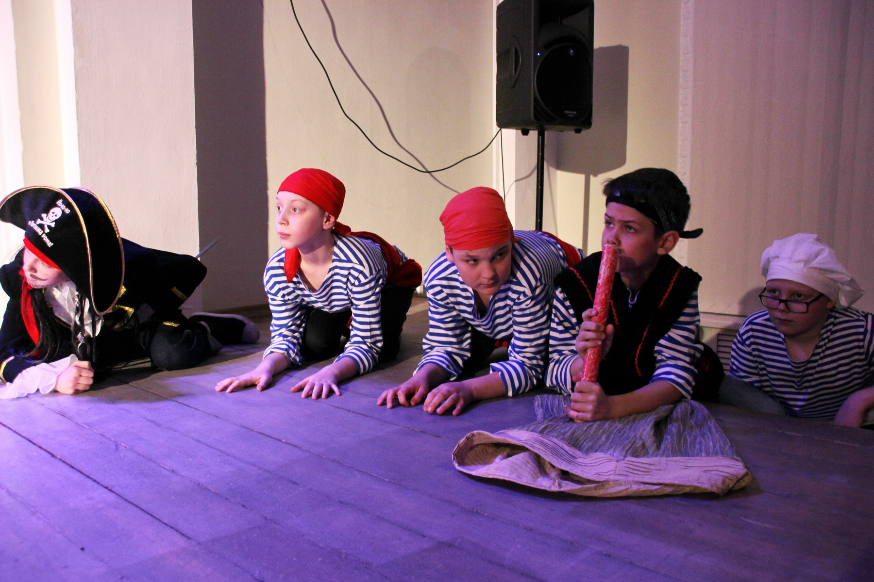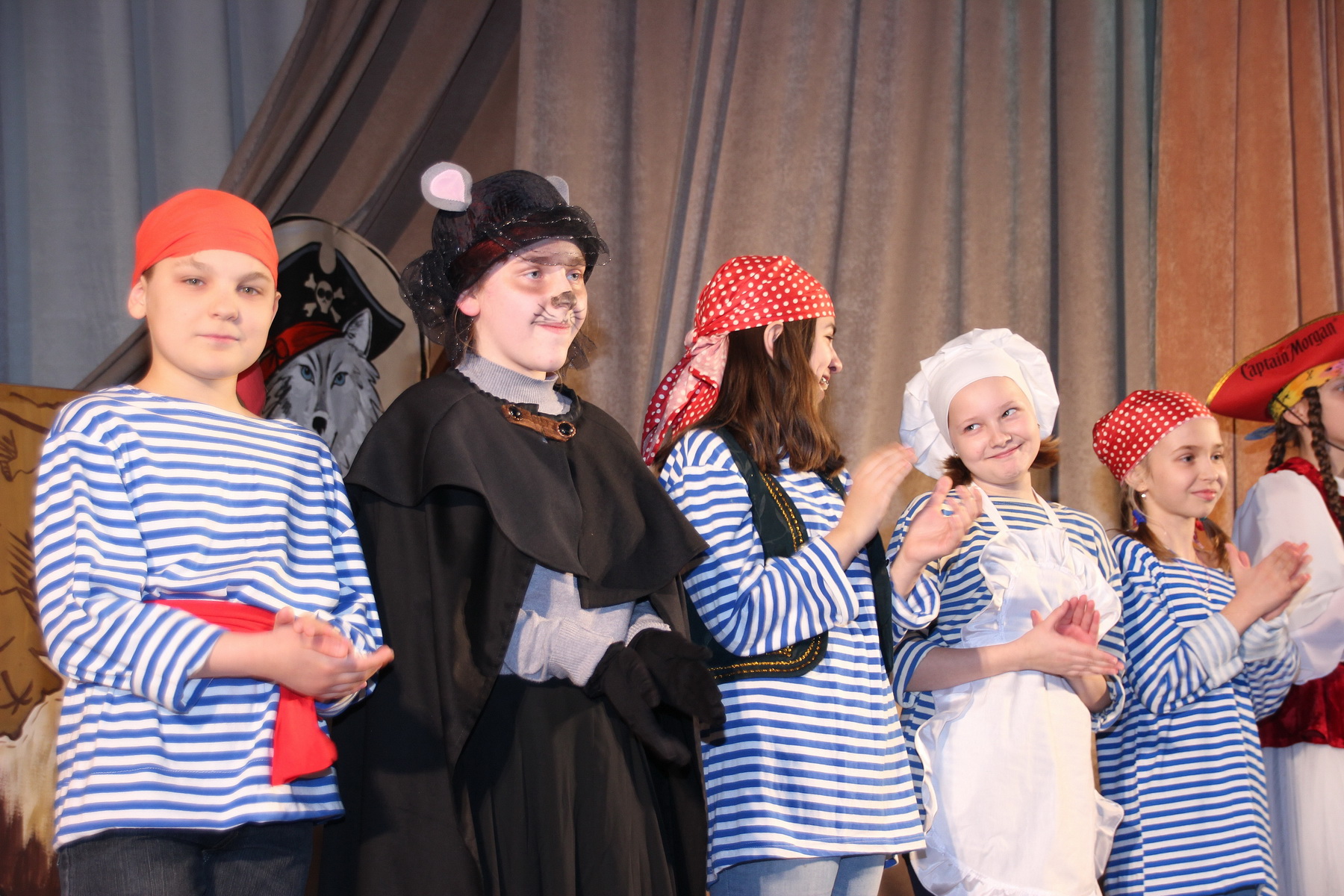 Старшие из юных актеров, занимающиеся у Наталья Зекцер в объединении «Театральный интенсив», представили зрителям новый спектакль — пиратский боевик «Веселый Роджер». 21 апреля они выступили на сцене Дворца детского творчества.