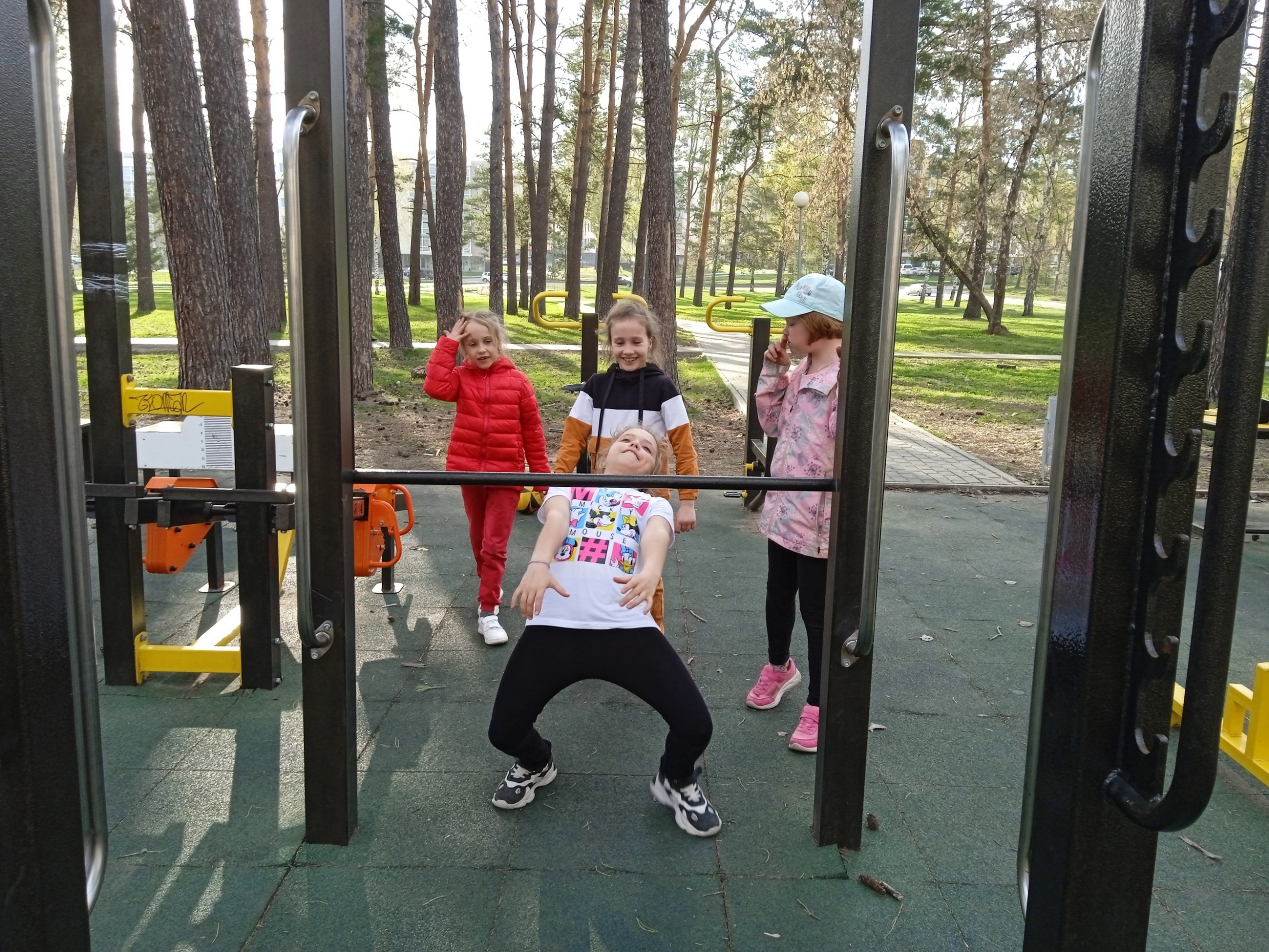 Дети-любители активного и здорового образа жизни на свежем воздухе продолжают занятия, принимают участие в различных спортивных играх на уличном спортивном комплексе в сквере МКР-22, в рамках реализации проекта «Спорт в каждый двор» федерального проекта «Спорт — норма жизни». В соответствии с этим проектом инструкторы по спорту Центра внешкольной работы для всех желающих горожан любого возраста бесплатно проводят занятия на определённых спортивных площадках под открытым небом.