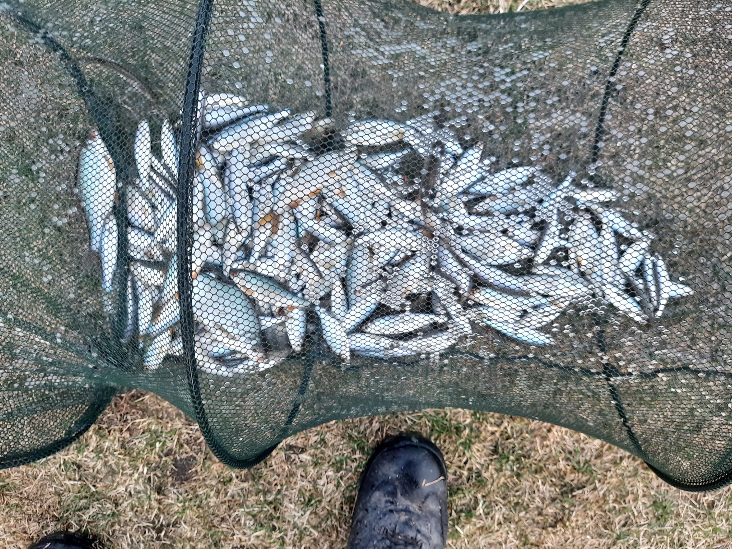 Закрытие зимнего сезона состоялось 3 апреля 2022 года, как и в ковидном 2021 году, уже традиционно на пруду «Боровом» на Саровке в Сарове. Погода не радовала, периодически начинался «дожде-снег» под ветер сильный. Вышел на водоем к обеду и рыбачил до вечера. Костюм снаружи промок, внутри не успел. Закормил более трех десятков лунок по обоим берегам, сухой смесью в чистом виде, с добавкой кормового мотыля и чистоганом кормовым. Более половины лунок использовал старых чужих. Лед на пруду в норме, в районе 25−30 см. Лунки не мерзли. Народу человек 5−6, периодически приходили-уходили, клева сильного не было видимо. По словам аборигенов уклея и плотва ловись с неделю назад. Ловил на 0,063, на часик переходил на 0,07. Мормышки 2,0−2,65. Начал на лесу 0,063 с мормышками 2,0, вроде пошли поклевки, перешел на 0,07 с 2,65. Плотвички попались подряд в течение 30 минут, будто был выход какой, все еще на 0,07 лесу с мормышками 2,65. А потом все, только окушата на лесу 0,063. Народ до следующей субботы еще выходил на лед «Борового». Итого 800 г.
