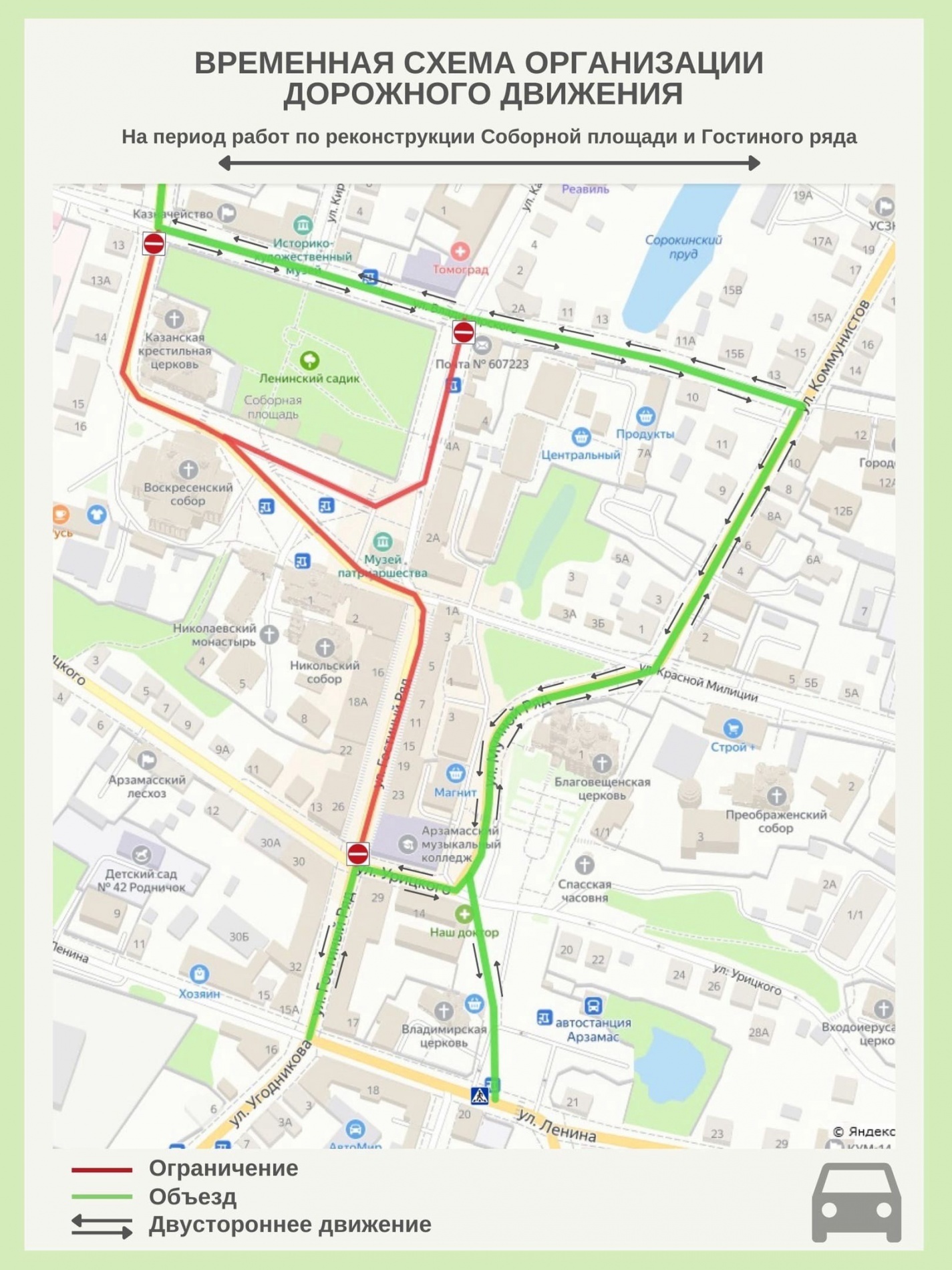 Схема движения автотранспорта в Арзамасе на Соборной площади и Гостином ряду изменится