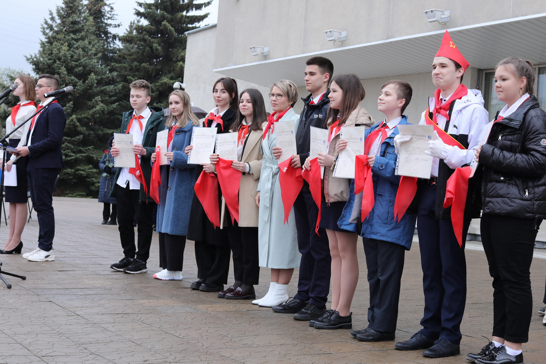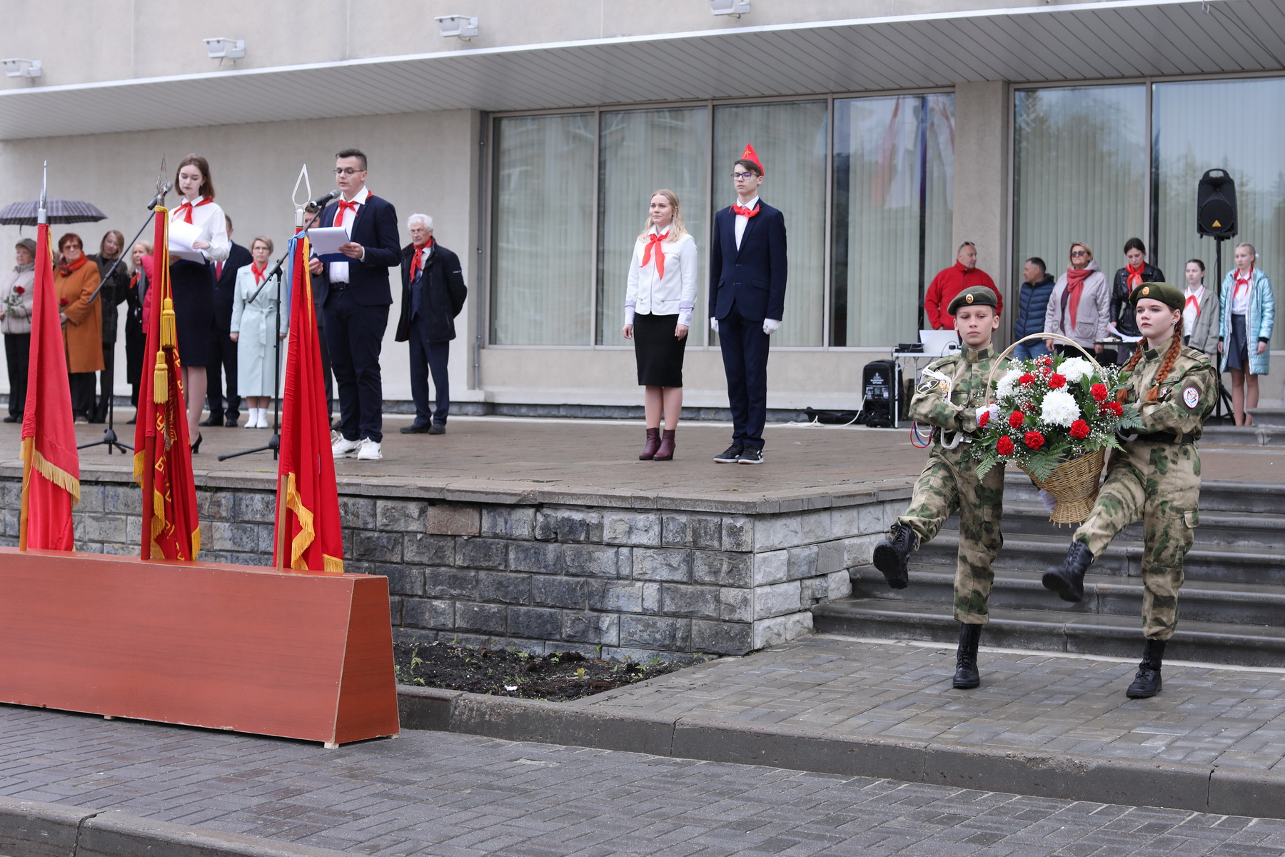 Утро 18 мая началось на площади Ленина с торжественной линейки, посвященной столетию создания Всесоюзной пионерской организации. В присутствии почетных гостей и руководителей города лучшие старшеклассники гимназии № 2, школ №№ 7 и 16 внесли флаг Российской Федерации, знамена пионеров 30-х и 70-х годов, знамя Союза детских организаций «Сияющие звезды». Затем председатели советов дружин сдали рапорт, выступил сводный отряд барабанщиков и началось вручение наград.