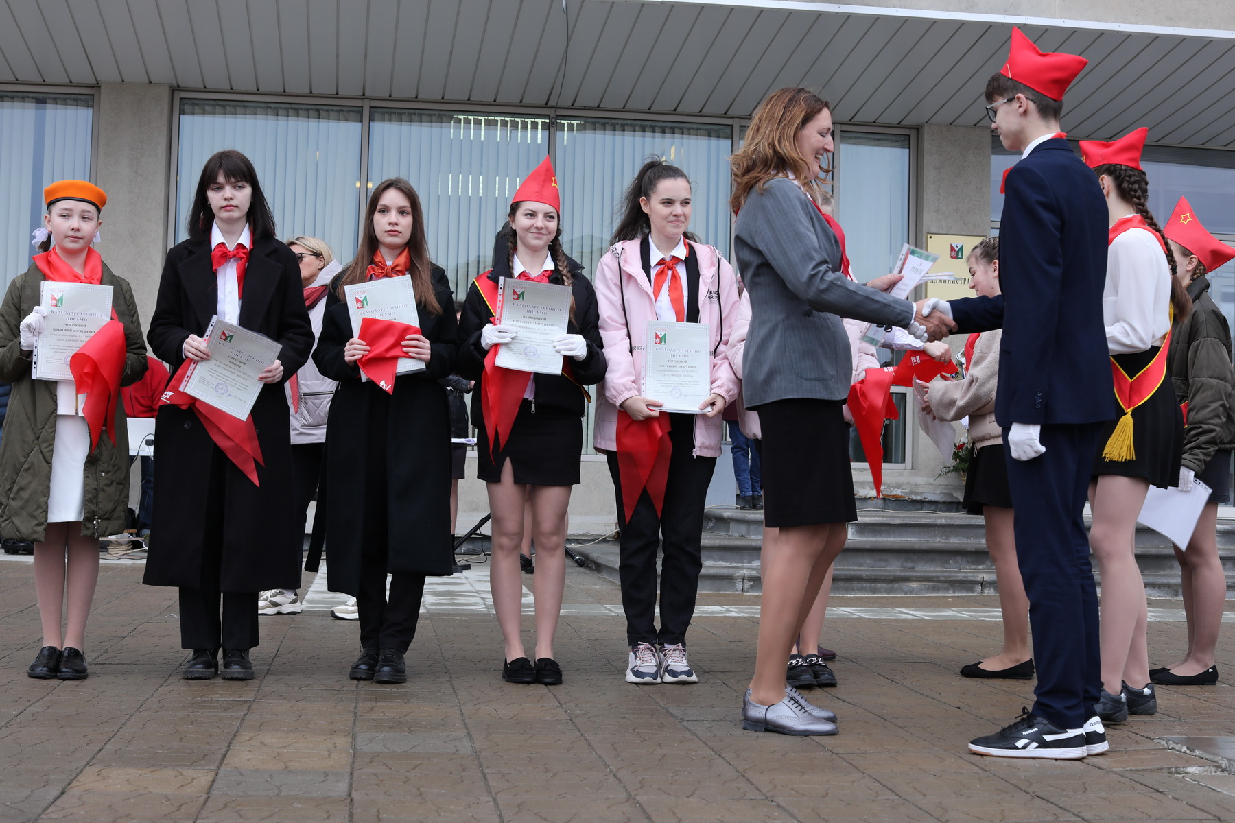Директор Департамента образования Наталия Володько поблагодарила пионеров-инструкторов и членов детской палаты «Галактика» разных лет за весомый вклад в развитие детского движения города и активную гражданскую позицию. Она вручила благодарственные письма Вадиму Лебедеву, Милане Машинистовой, Александре Молоковой, Дарье Пронькиной («Космическая» имени Г. С.Титова, лицей № 3), Максиму Комарову («Алые паруса», школа № 11), Ксении Крапивиной («Творцы», школа № 13), Максиму Кузьмину (Лига «Пламенная», школа № 14), Илье Деркину и Яне Дудлиной («Надежда», школа № 17).