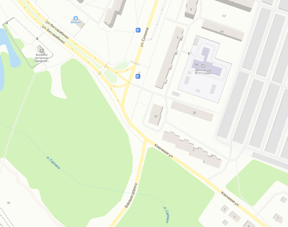 Возможные пути объезда перекрытого участка Автомобильной дороги по улице Бессарабенко и по дороге Боровая.