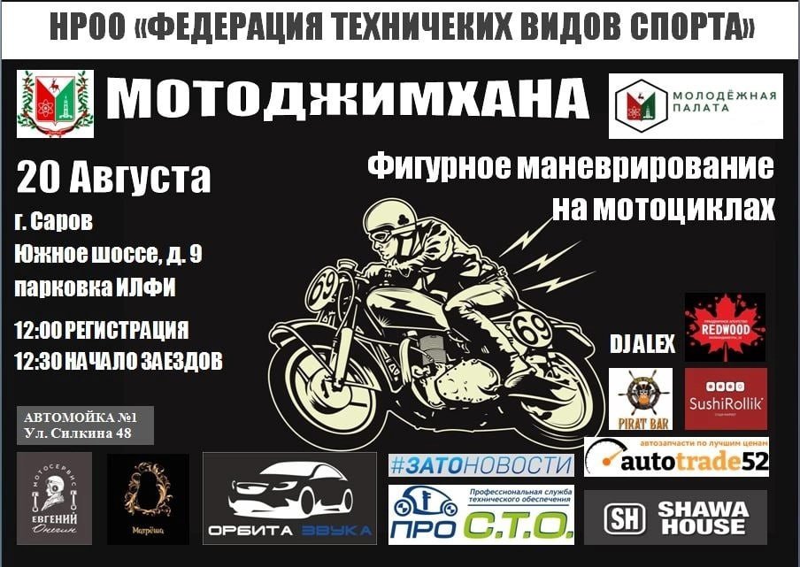 НРОО «Федерация технических видов спорта» 20 августа приглашает зрителей на городское технически ориентированное мероприятие для любителей мотоциклов — Летний этап по мотоджимхану!