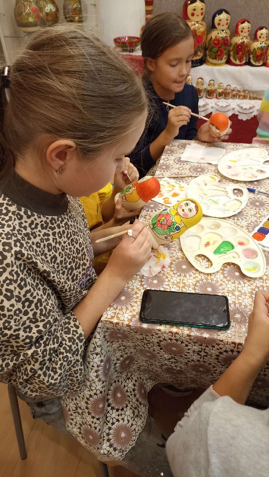 Изюминкой мероприятия стал мастер-класс по росписи матрёшки в технике мереновского письма. Тамара Георгиевна щедро делилась секретами забытой росписи, рассказывала об особенностях работы тушью и акварелью, тонкостях правильного ведения линий кистью и пером, о подборе цветовой гаммы при росписи мереновского матрёшки.