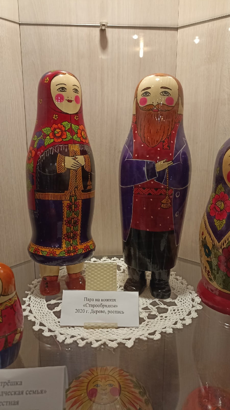 Гости мероприятия, большие друзья Музея из Нижнего Новгорода, Наталья Викторовна Квач и Сергей Иванович Квач, долгое время сотрудничавшие с Тамарой Георгиевной как искусствоведы и идейные вдохновители, дополнили рассказ мастера, а Наталья Викторовна рассказала об истории появления матрёшки в России.