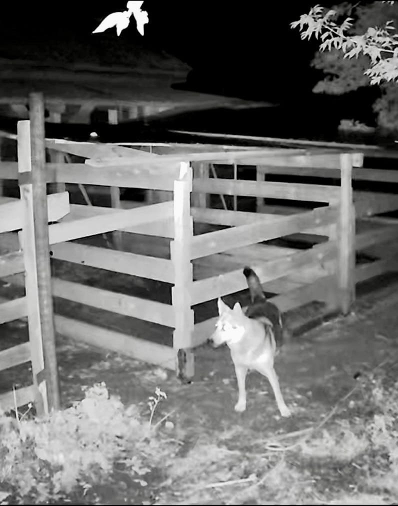 Работают в паре. Амур разведчик, наводчик. На видео попал момент, где он обнаружил жертву в загоне и буквально подозвал напарника. И началась «охота».