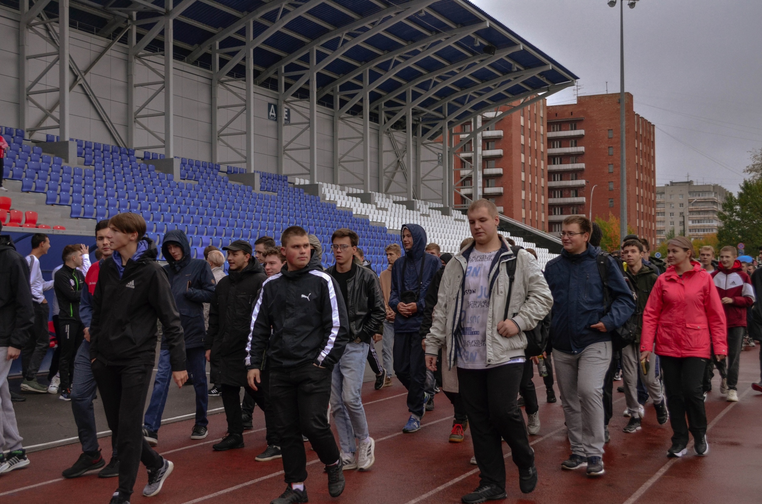 По окончанию линейки преподаватели физической культуры провели для студентов разминку, а после — спортивный забег.