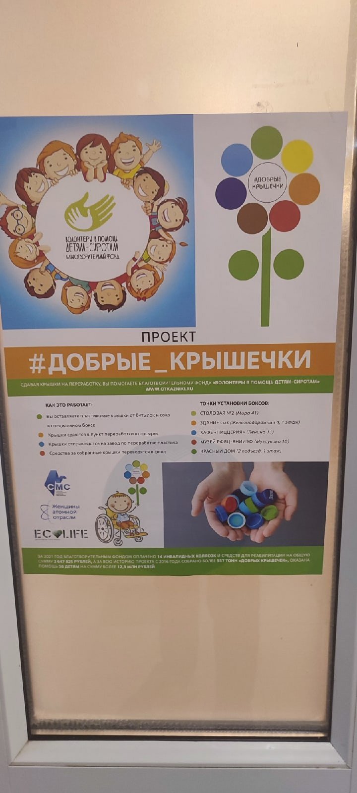 Проект «Добрые крышечки» реализуется