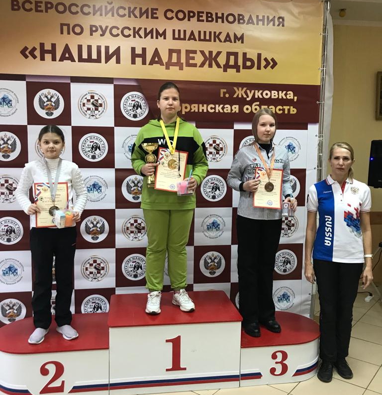 5−6 ноября в Брянской области состоялись Всероссийские соревнования по русским шашкам «Наши надежды». Нижегородская область была представлена одной участницей в группе девушек до 14 лет. 10-летняя Алисе Рубцовой смело сражалась с более опытными соперницами и в упорной, бескомпромиссной борьбе завоевала серебряную медаль.