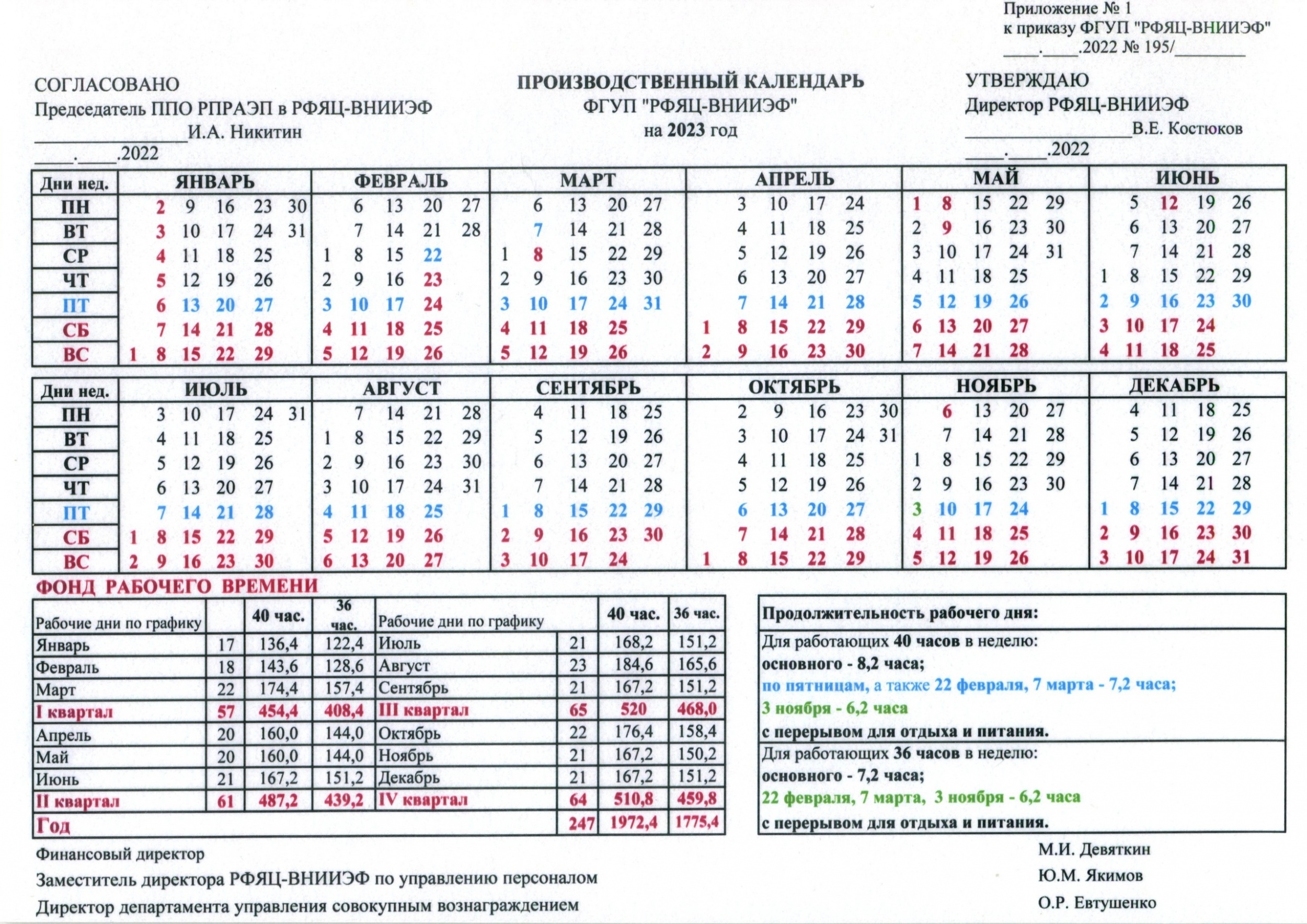 Появился производственный календарь ВНИИЭФ на 2023 г.