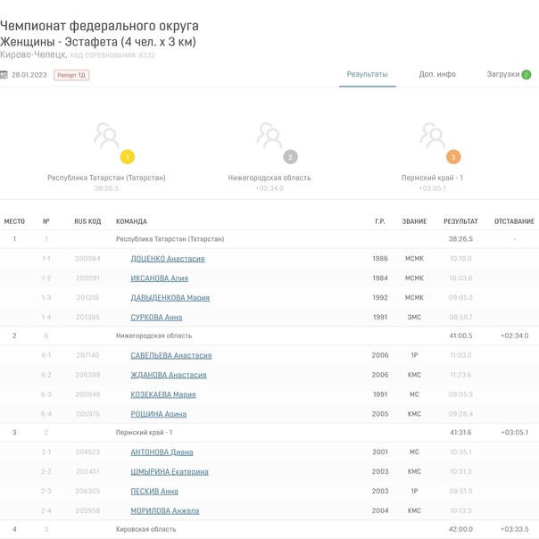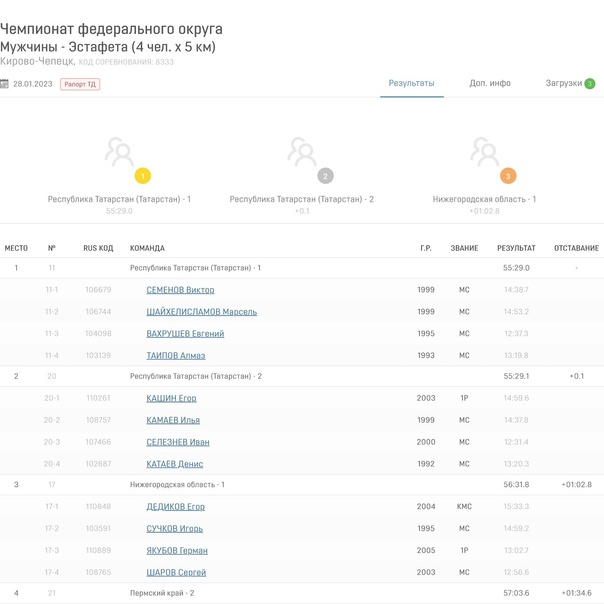 28 января, на Чемпионате Приволжского федерального округа в Кирово — Чепецке прошли эстафетные гонки 4×3 км и 4×5 км.