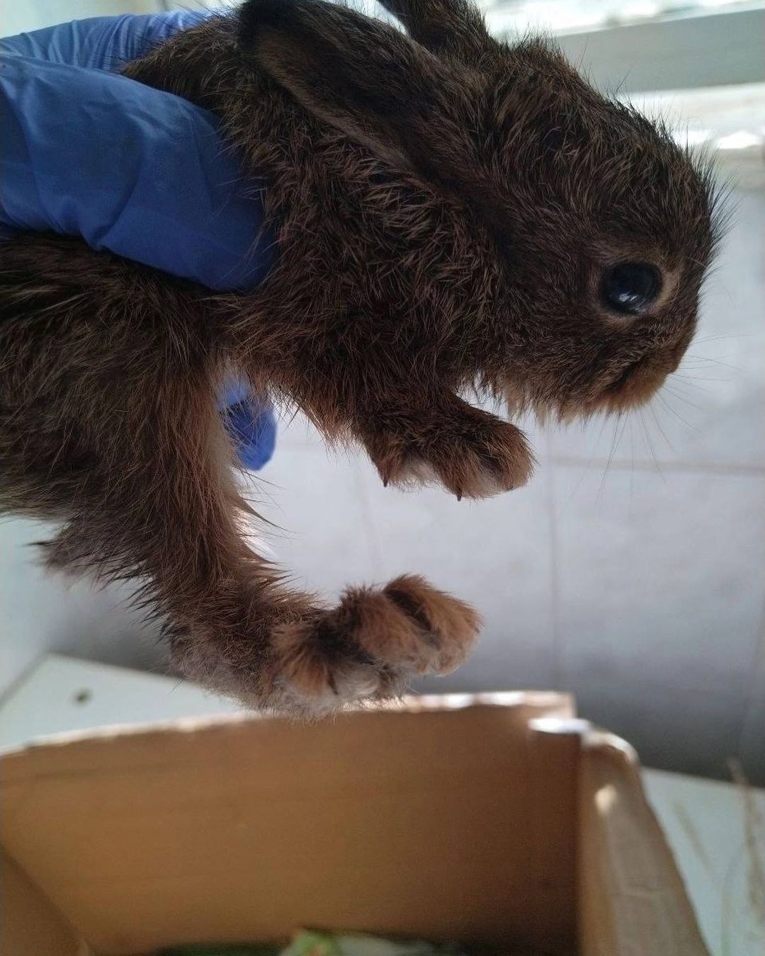 В ближайшее время малыша отвезут в «Дом зайца» — центр помощи диким зайцам, где подлечат вывихнутую лапку и найдут новый дом.