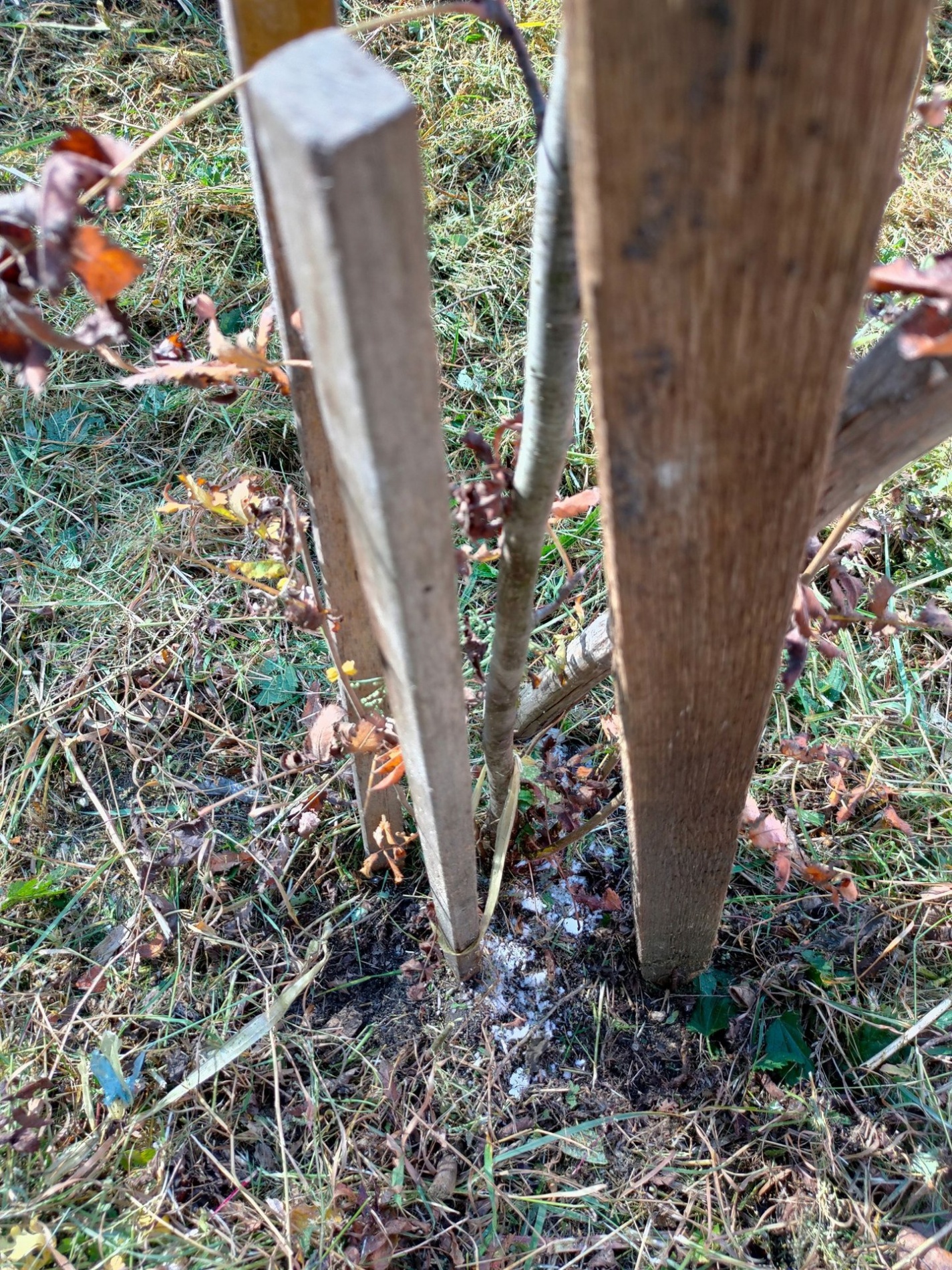 За последние пару лет жители высадили во дворе не менее 20 саженцев, подсыпки же белой субстанции были обнаружены лишь у 4 саженцев."