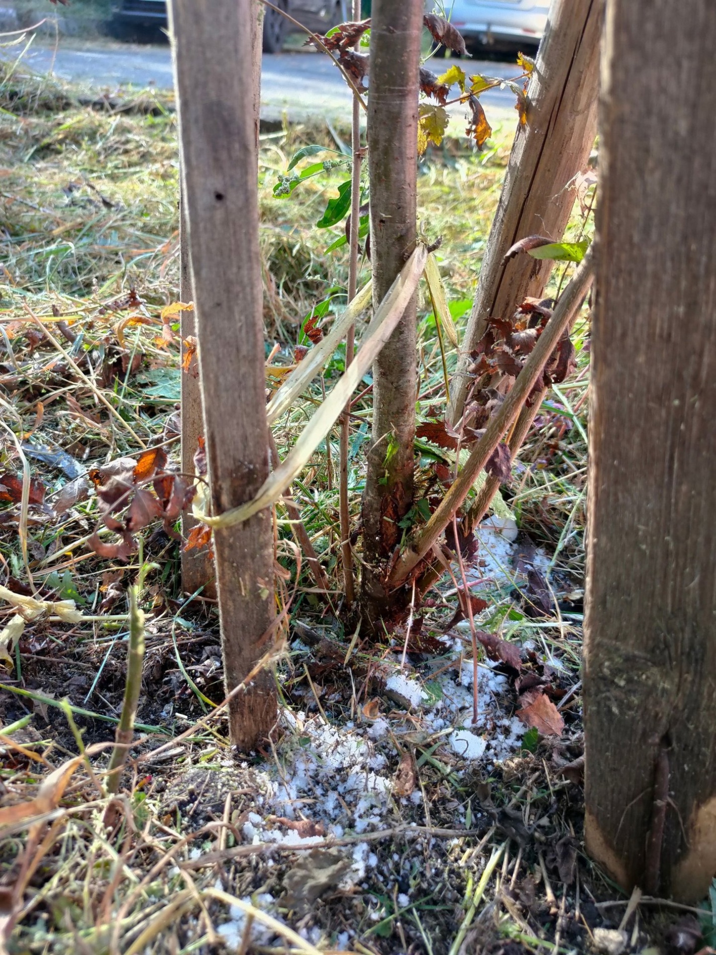Читательница предполагает, что это соль. Либо какое-то дешевое народное средство по борьбе с растениями. Потому что если бы это были удобрения, то их бы рассыпали по всем посадкам.