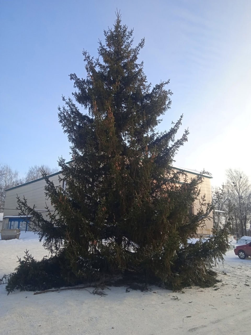 Приехала администрация и без спроса и согласия спилила ель, чтобы украсить ей на праздники площадь перед Домом культуры.