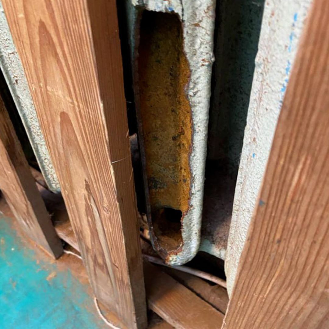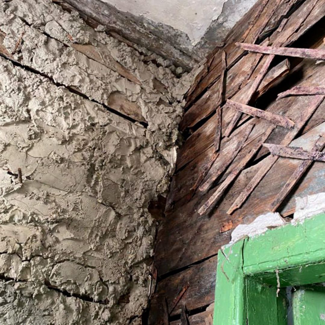 Здание буквально непригодно для работы. Стены частично разрушены, отопления нет, трубы разморожены, а батареи в дырах. По стенам разросся грибок, от некоторых окон остались только рамы. Пол тоже не в лучшем состоянии, а в туалетах нет воды и света.
