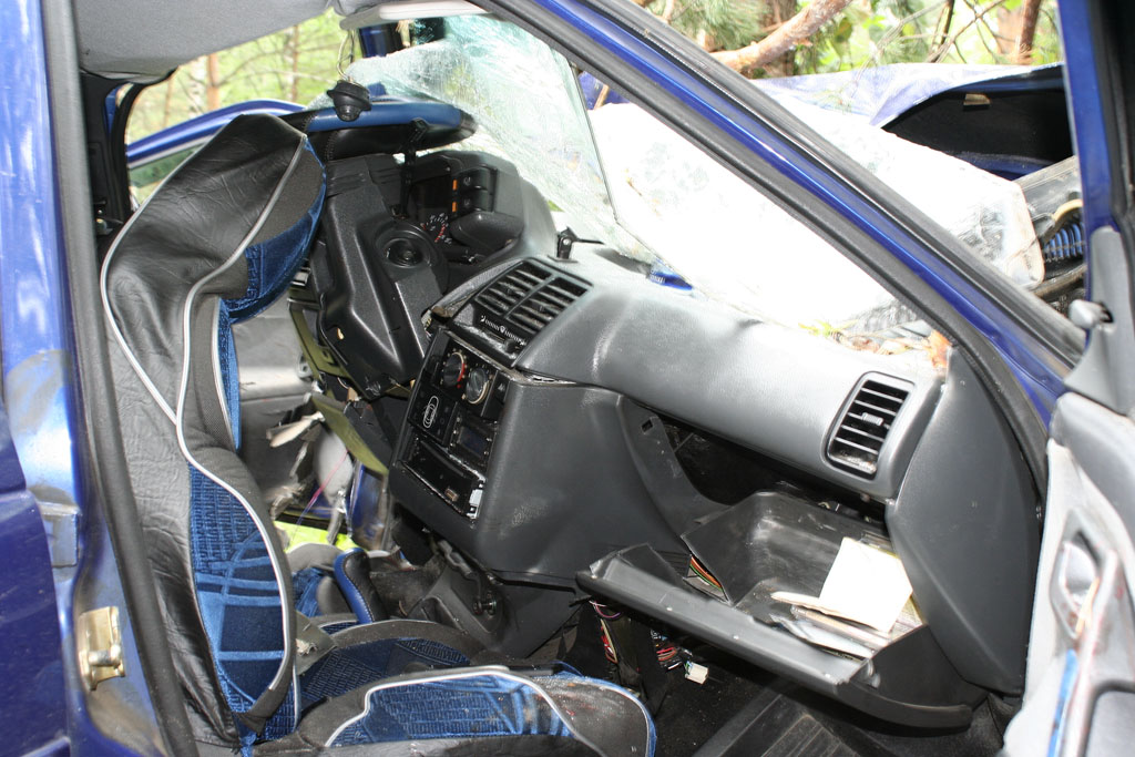 Обратите внимание на рулевую колонку. На сиденье видна кровь. Однако, как ни странно, говорят никто не погиб.