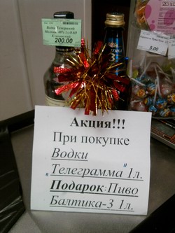 В рекламе ведь что важно? Попадание в местный колорит. Что гласит русская народная пословица? Пиво без водки — деньги на ветер! Коктейль «Ёрш» и вовсе является квинтэссенцией народной мудрости. Через это акция, проходящая в саровском магазине [здесь могла быть ваша реклама], обречена на успех.
