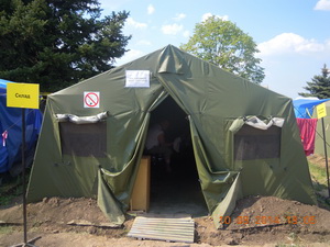-Около 5−6 километров. Были видны и слышны выстрелы, вспышки. Был момент — поступила информация, что фиксируется большое скопление сил на той стороне границы, возможны провокации. Мы приготовили все для экстренной эвакуации. Стояла задача и самим экстренно выехать, оказывать помощь, и потом обеспечить прием пострадавших, сохранить медицинский персонал. Не было необходимости бросаться помогать, потому что этим занимались другие люди. Нужно было быстро переселиться и подготовить новый лагерь.Мы сегодня ругаем Россию за беспорядок в экономике и жизни, но что касается организации, может, и были проблемы в первые дни, но к пятой неделе все было отшлифовано…