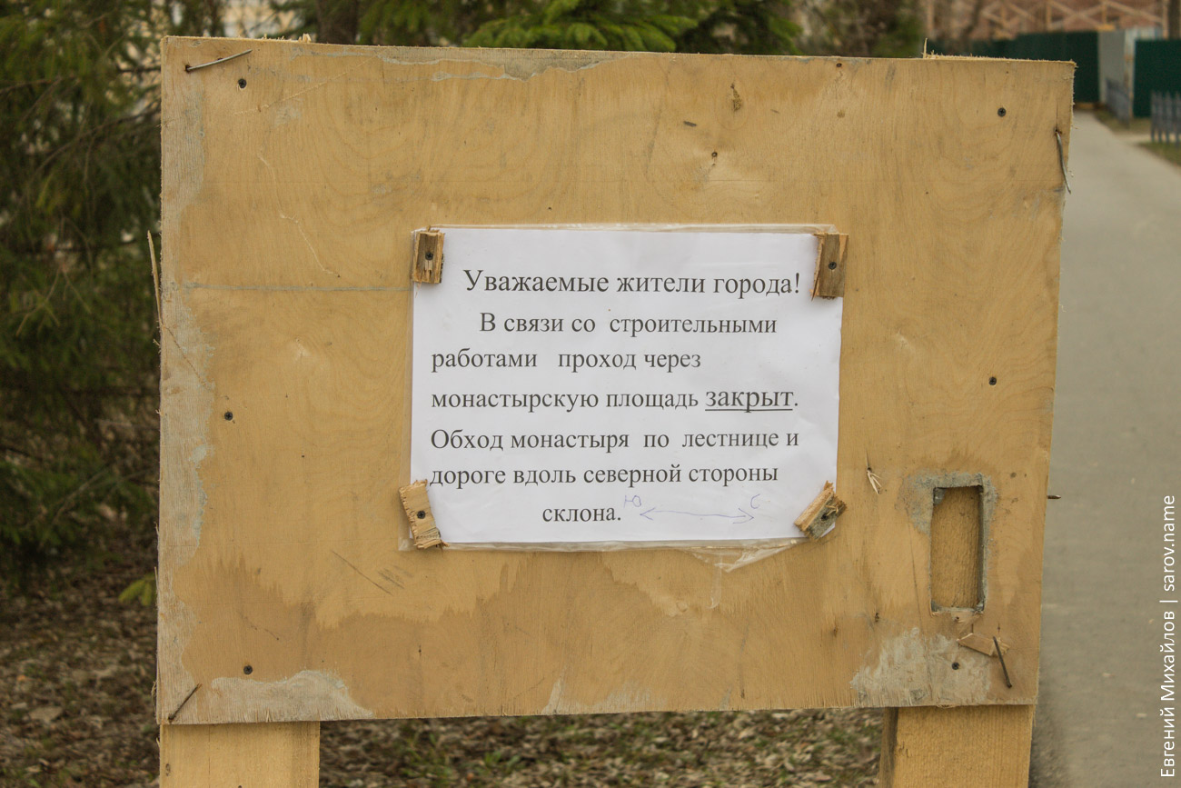 Как сообщает «Православный Саров», шум и возня в восточной части монастыря начались потому, что резко активизировались работы по укреплению фундаментов, строительству отсутствующей башни в северо-восточном углу, восточной стены и ворот со стороны проспекта Мира. То есть, монастырь замыкается и окончательно отгораживается от города.