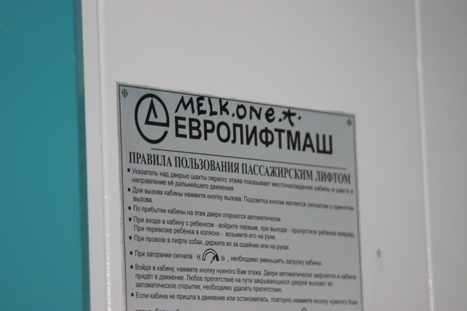Неизвестный науке малолетний дурачок, который подписывается «Мелк», сперва наносил разнообразную мазню на заборах напротив «Атома», теперь вот добрался до 12-этажки на проспекте Музрукова.