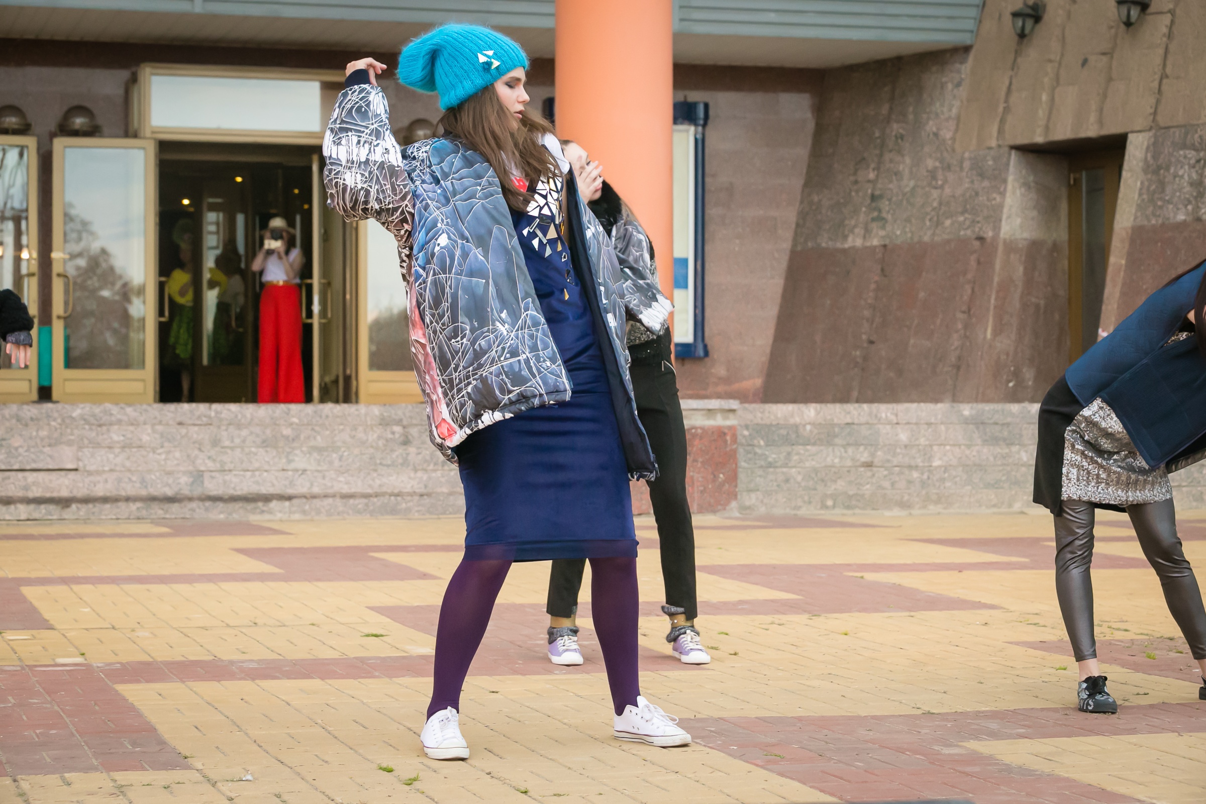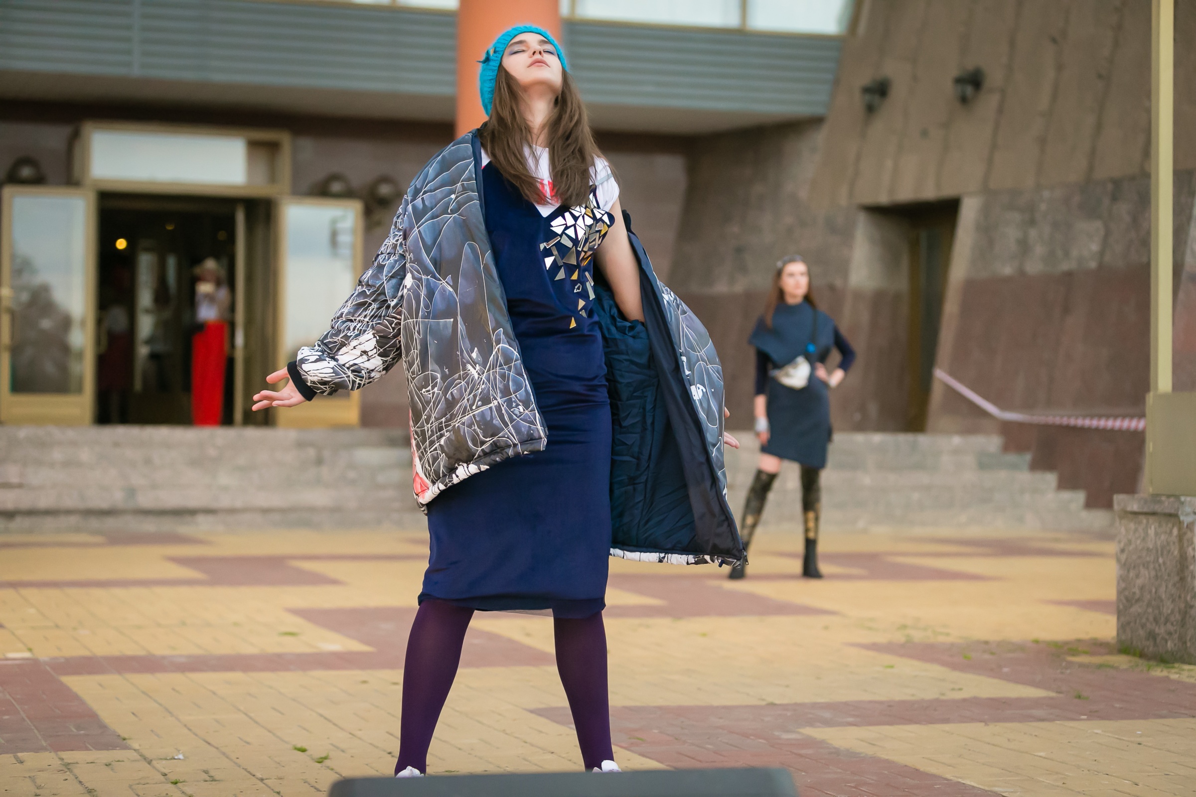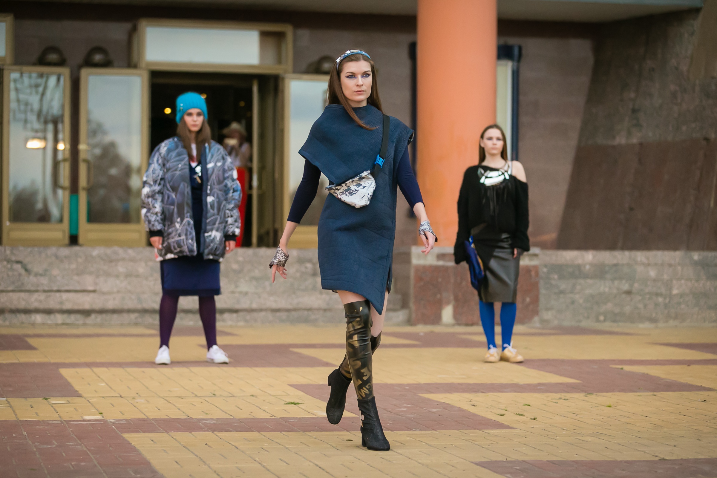 Вдруг девушка в отличной носибельной одежде, и почему-то одна! Сдаётся мне, вся коллекция гвоздь программы, но в репортаж не попала: