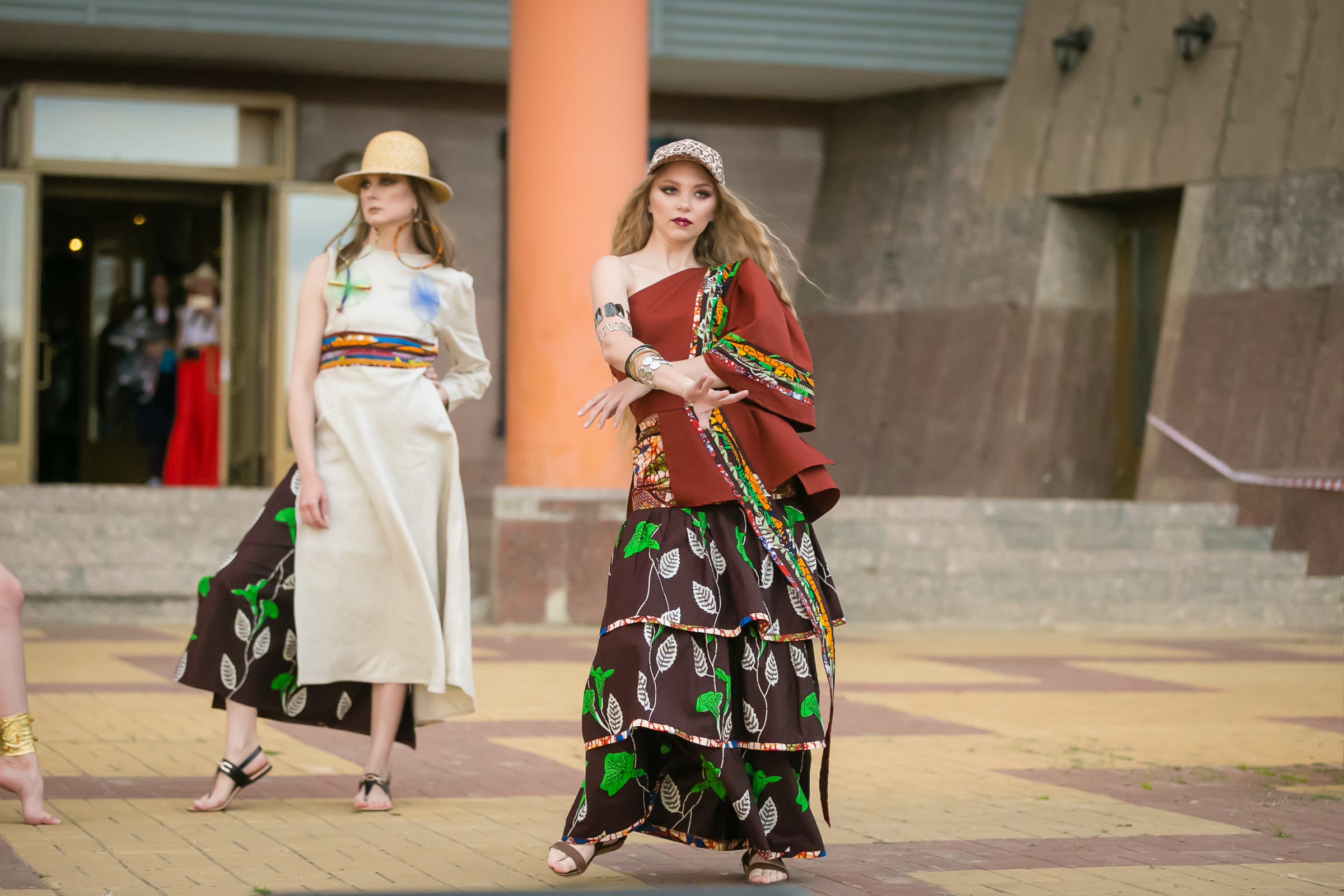 Вот эта пёстренькая понравилась. Хорошая. Не знаю, каких стран мотивы. И модели не подкачали: