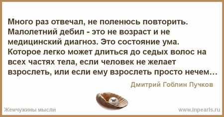 Я тут периодически в каментах кому-нибудь из посетителей сайта пишу — дескать, я с вами считаю разговор бессмысленным, поскольку вы, батенька, носитель так называемого подросткового мышления.