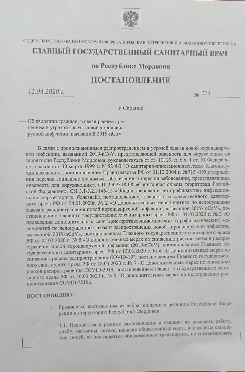 А также есть скан постановления главного санврача по Мордовии: