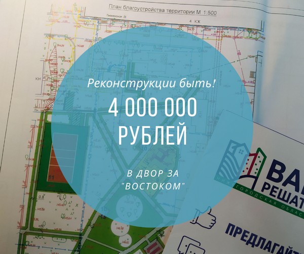 Напомню, что пока был депутатом, заложил деньги на разработку проектно-сметной документации по комплексной реконструкции двора за «Востоком» (пр. Ленина, дома 34, 36). В этом году при поддержке ребят из общественного движения «Новые люди» в Сарове подготовил пакет документов, собрал подписи жителей этого двора и агитировал всех принять участие в финальном этапе — электронном голосовании на сайте «вамрешать.рф». И вот 30 мая стали известны проекты-победители.