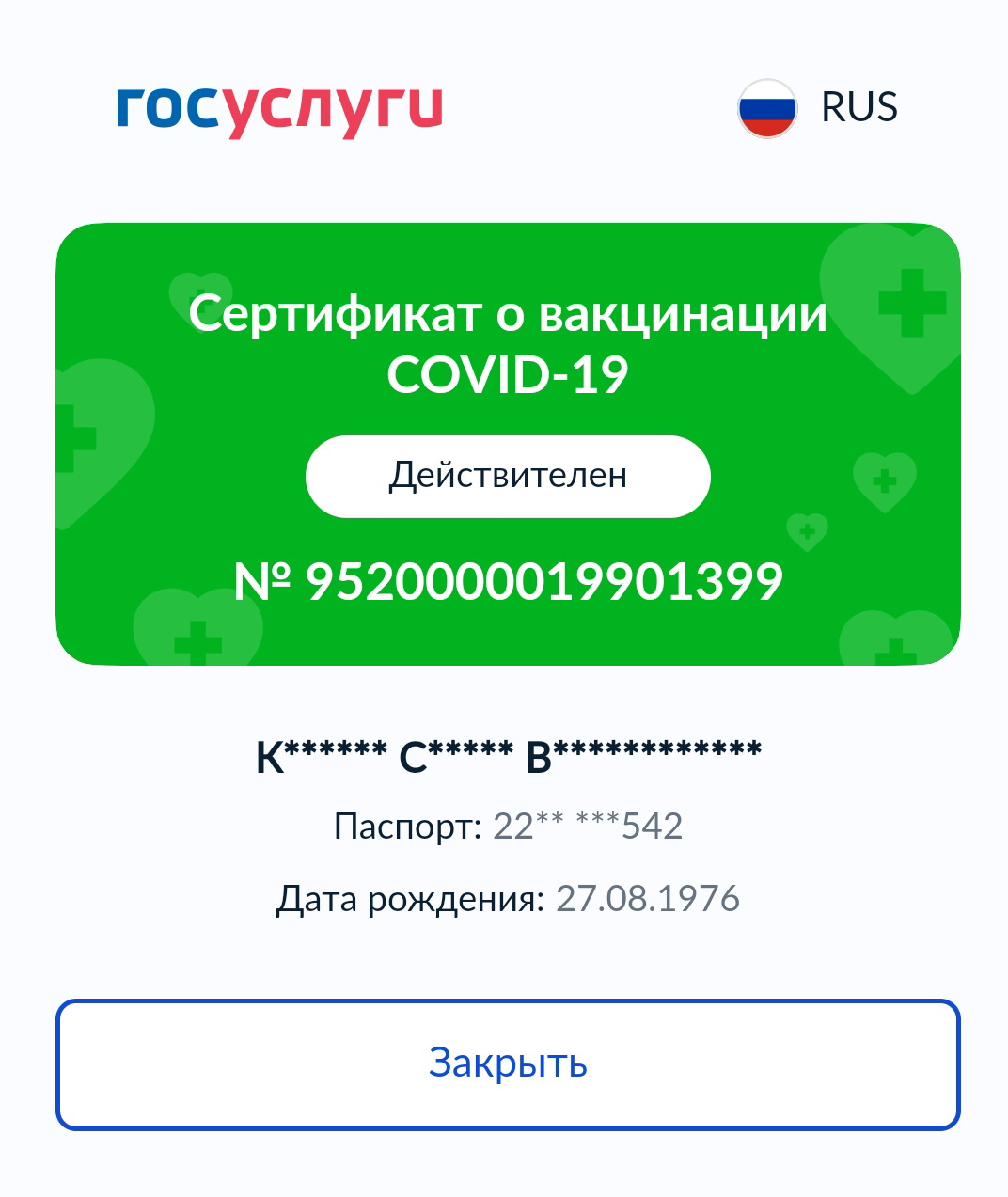 В пдф-документе на двух языках указано, чем привился и когда. Само собой, есть и печать зверя — QR-код, по которому на мобиле открывается электрический мультипаспорт.