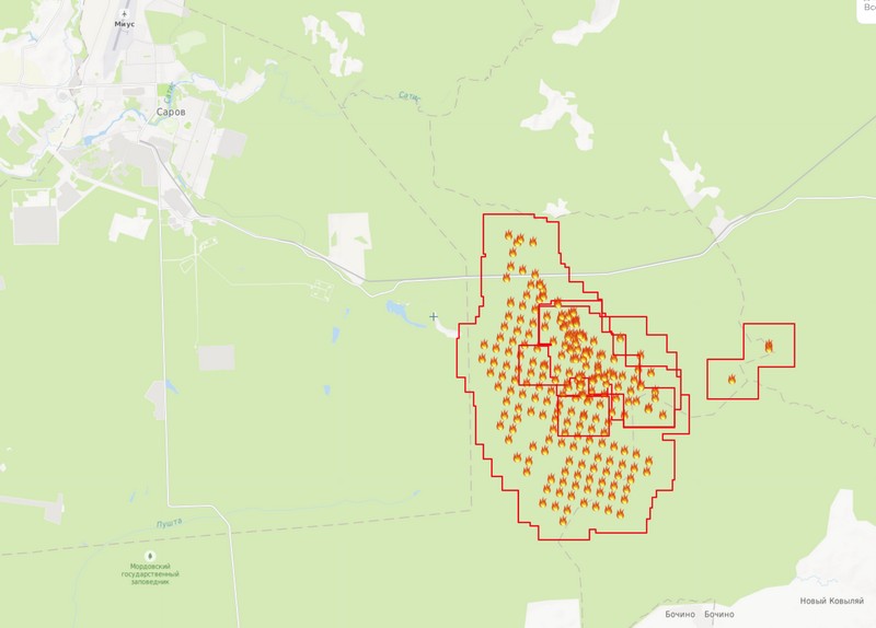 P. S. Похоже, заповедник в районе юго-западного угла периметра Сарова снова горит.